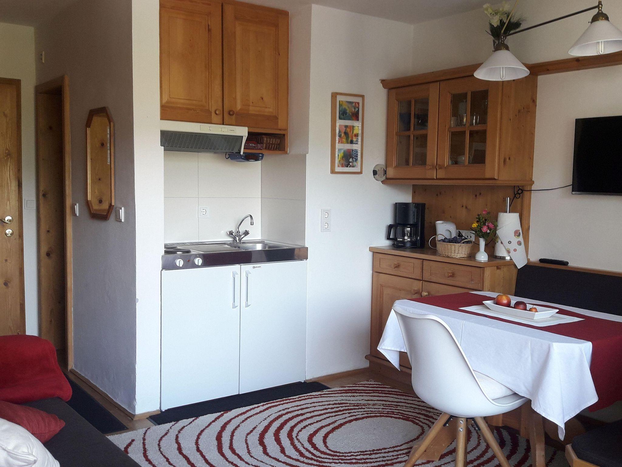 Bestehend aus 1 Wohn-/Schlafraum mit Dusche und WC, Balkon, Schrankbetten oder Ausziehcouch, Kochnische mit sämtlichem Koch- und Tafelgeschirr, Kaffeemaschine, Wasserkocher, Toaster, SAT-TV.