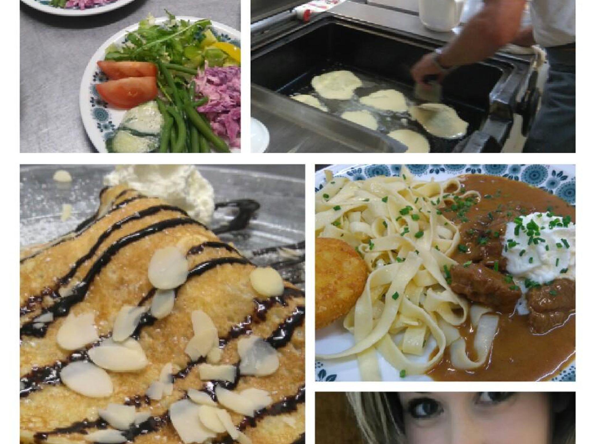 Die Chefin kocht selber mit regionalen und saisonalen Produkten. Butter und Milch kommche von einem lokalen Anbieter. Einmal in der Woche wird gegrillt auf der Terrasse.