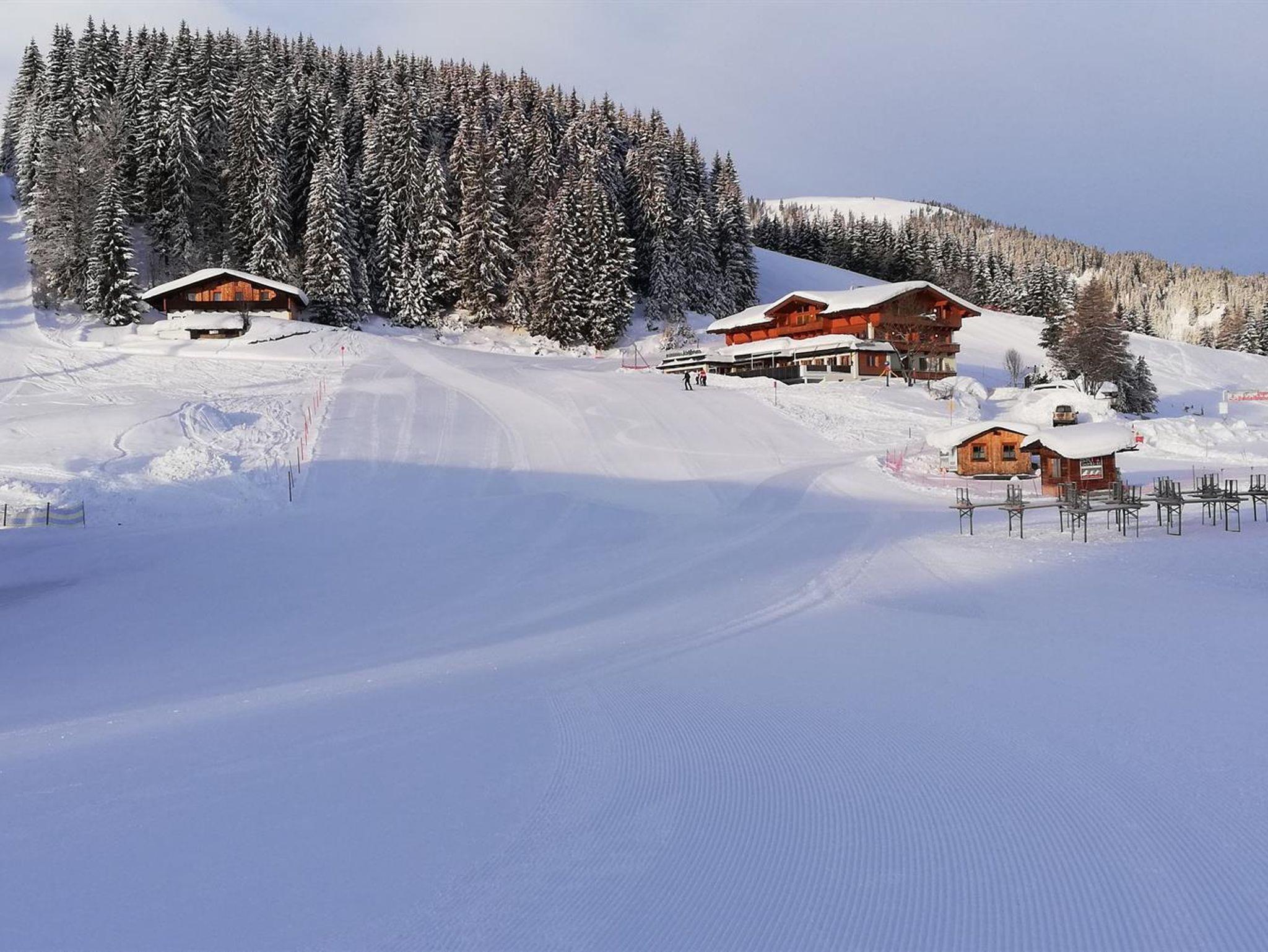 Im Winter: Raus aus dem Skikeller und ab auf die Piste . Am morgen die ersten Spuren ....im Schnee, nachmittags in die Sauna.