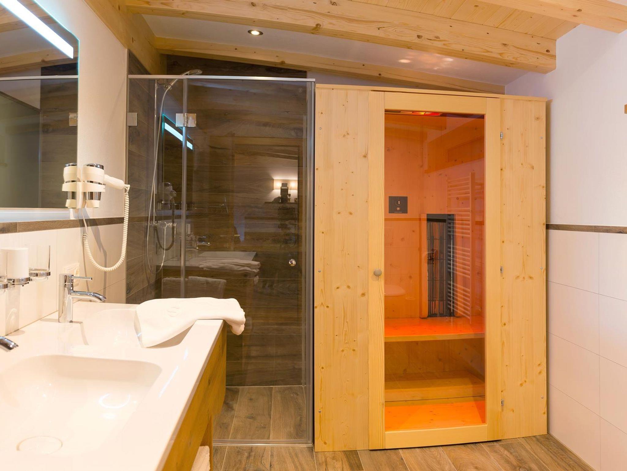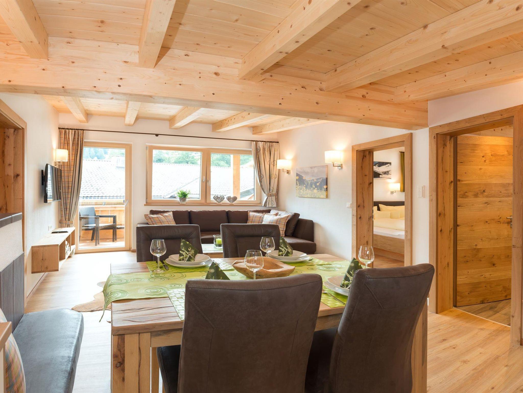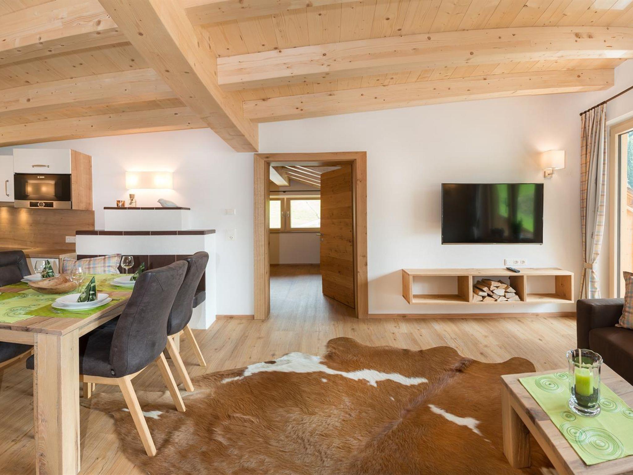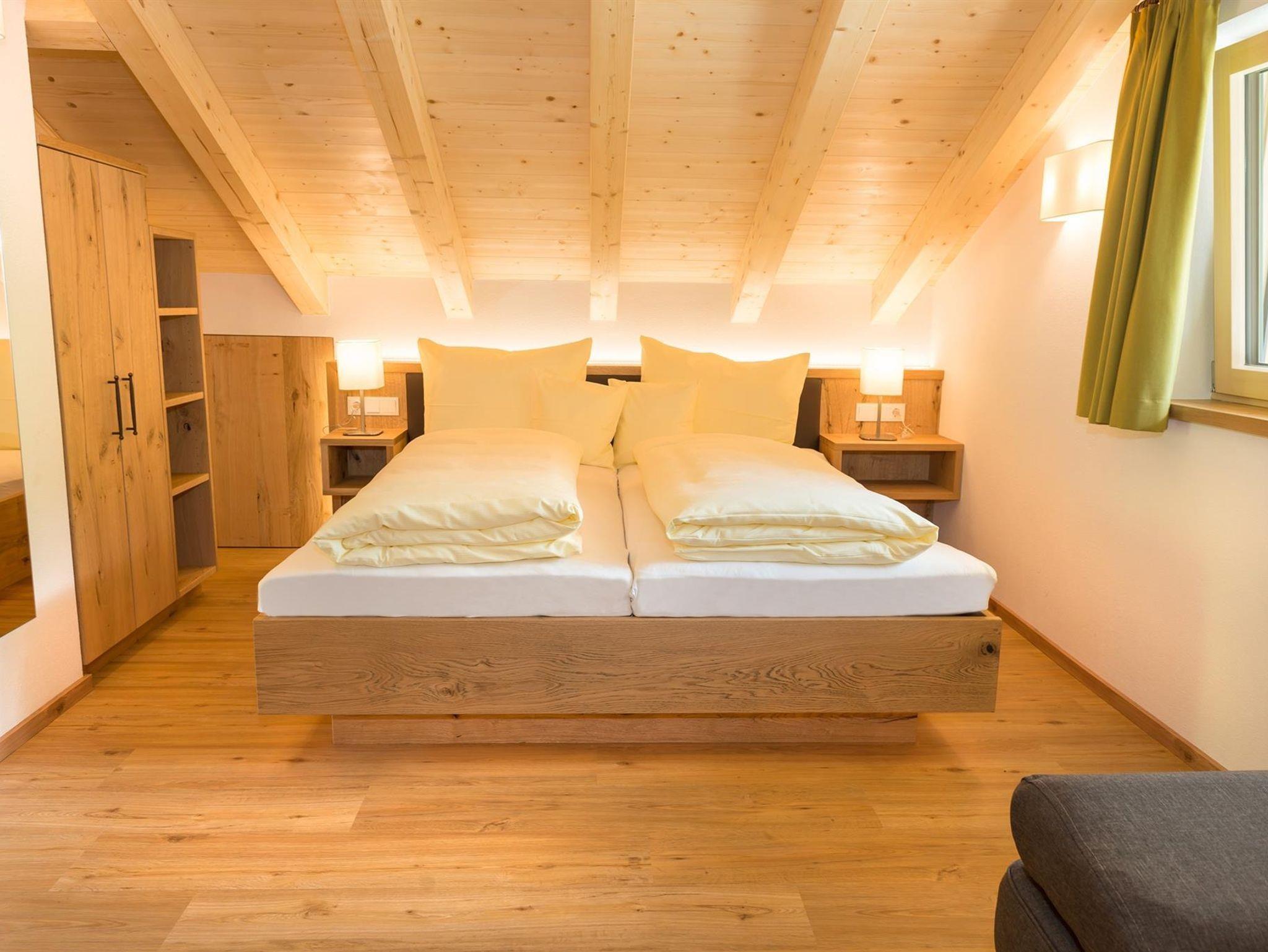 Das Appartement verfügt über 1 Doppelzimmer, 1 Mansarden-Doppelzimmer, Wohnküche, 2 Balkone, Bad mit Infrarot-Wärmekabine, WLAN, TV, Parkplatz vor dem Haus, Handtücher und Haarfön, Bettwäsche, voll eingerichtete Küchenzeile sowie Skiraum mit Schuhtrockner.