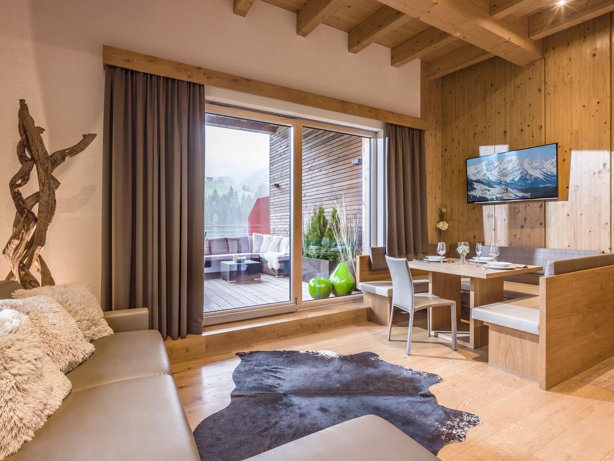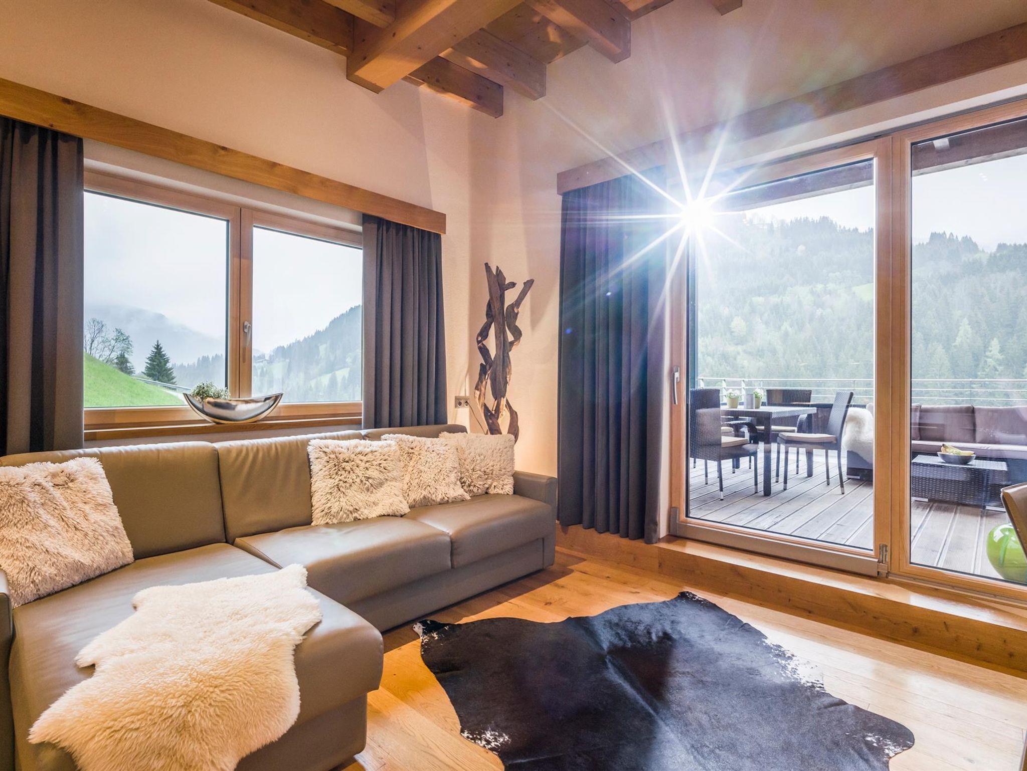 Unser Appartementhaus ist luxuriös und mit höchstem Wohnkomfort und viel Liebe zum Holz ausgestattet, liegt zentral, sonnig und doch ruhig auf 900m Seehöhe in Auffach