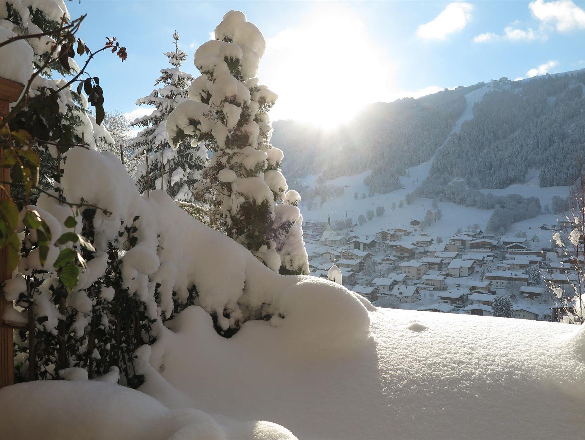 IHR genießt von den drei Wohnebenen sowie vom Garten einen traumhaften Blick in die Berge und über den Ort.