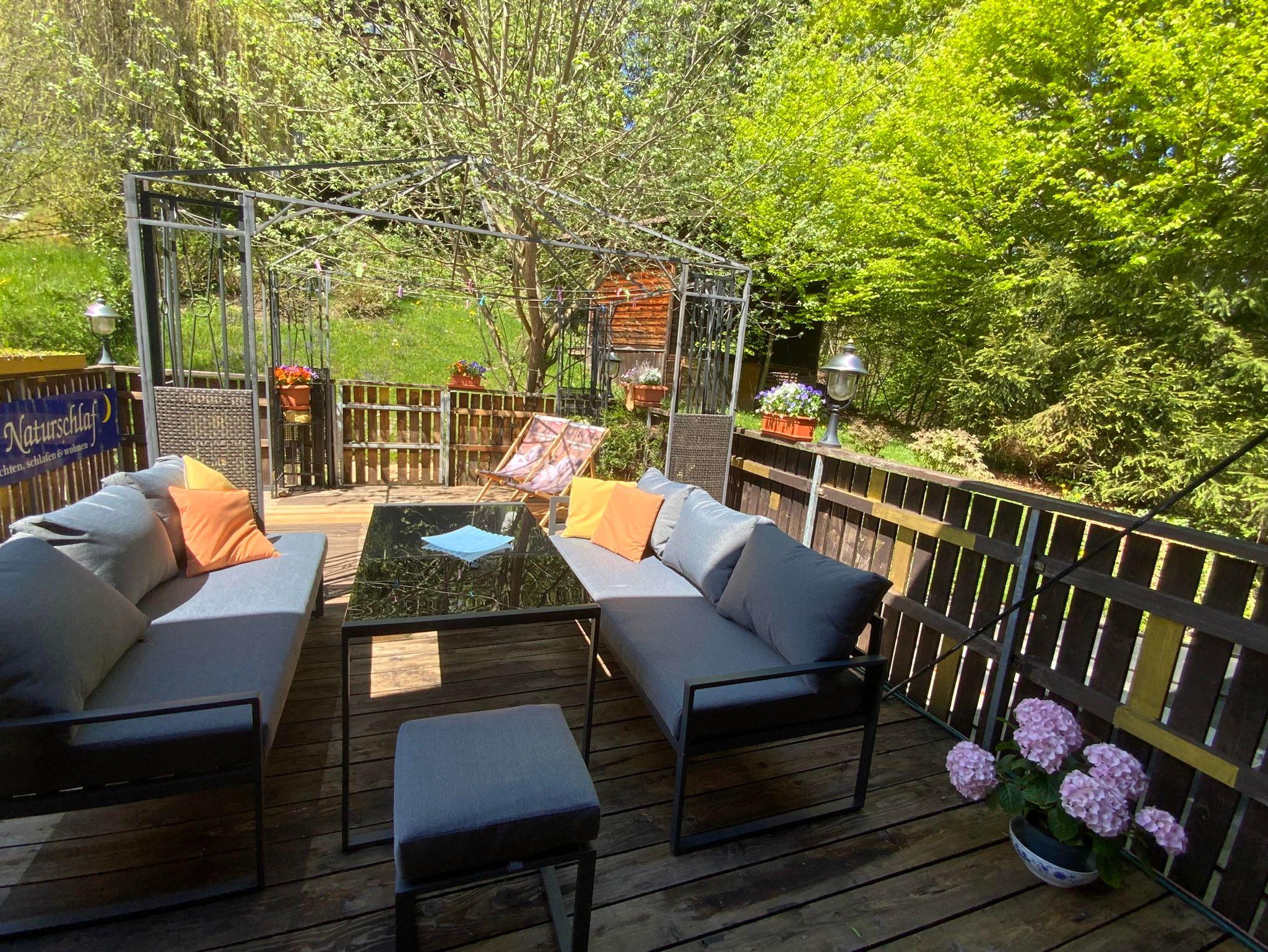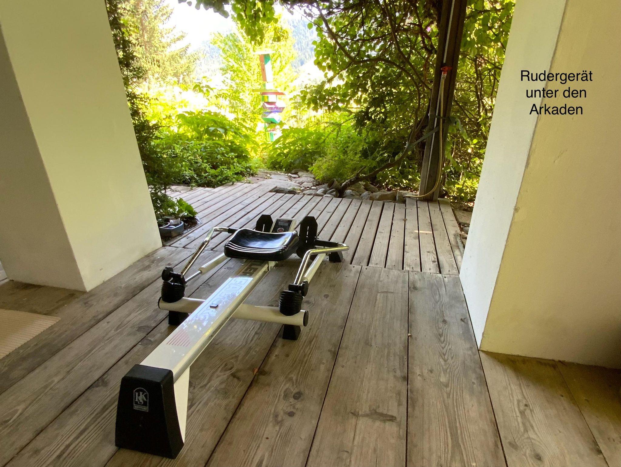 IHR kommt in das außergewöhnliche Urlaubsdomizil von den überdachten Parkplätzen durch die separate Haustür, den Flur, einem kleinen Schlafzimmer (160/200 cm Bett) zur geräumigen Wohnküche mit angrenzendem Südbalkon incl. Tischgruppe. Auf gleicher Wohnebene befinden sich auch ein ExtraWC und ein Schrankraum mit Waschmaschine. Über die Treppe gelangt IHR in die Gartenebene mit dem großen Schlafraum ( 180/200 cm Luxusbett, 90/200 cm Einzelbett, Infrarot-Wellness-Liege), Bad, sowie Zugang zur Terrasse, Arkaden mit Fitnessgeräten, Garten incl. Saunahäuschen ( zur alleinigen Nutzung). Zur dritten Wohnebene gelangt IHR von der Küche über die Wendeltreppe. Dort befindet sich das dritte Schlafzimmer (Doppelbett 180/200 cm), 2 weitere Badezimmer, das sehr großzügige Wohnzimmer mit angrenzender Dachterrasse incl. Lounge. In allen 3 Wohnebenen befindet sich jeweils ein TV. Die Wohnküche incl. Kochinsel ist hochwertig mit allem Komfort wie z.B. Kaffeevollautomat ausgestattet. Je nach Verfügbarkeit könnt IHR 2 E-Trekking-Bikes bzw. 2 Schlitten kostenfrei nutzen.