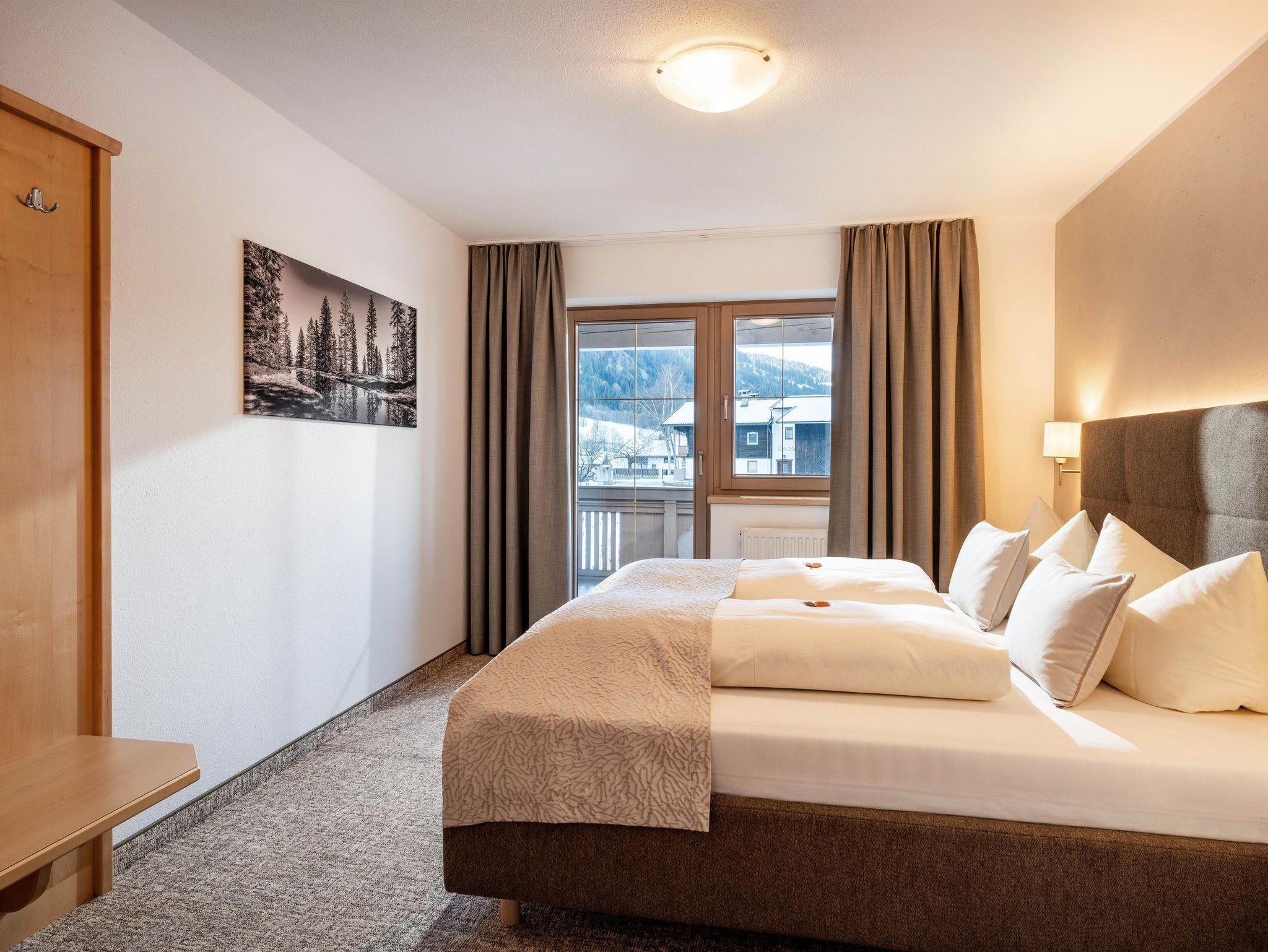 2 Doppelzimmer und 1 Einzelzimmer (Nichtraucher) mit DU/WC, Telefon, SAT-TV, WLAN, Radio, Zimmersafe, Fön und Balkon