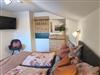 • Im Wohn-Essbereich befindet sich eine Schlafcouch mit integrierter Matratze für maximal 2 Personen (140 cm breit), Fernseher