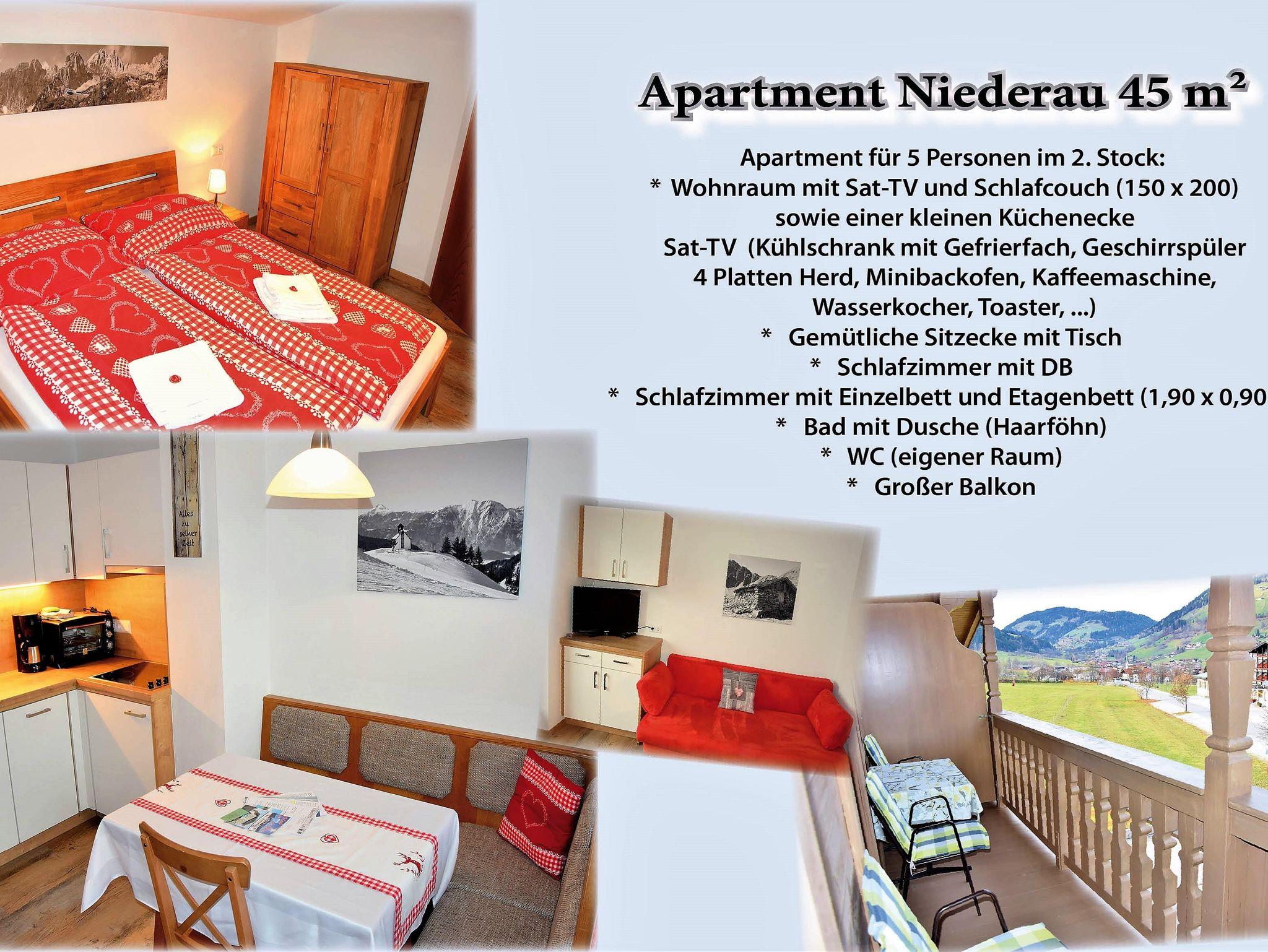 Apartment Niederau hat eine Größe von 45 m² und befindet sich im 2. Stock