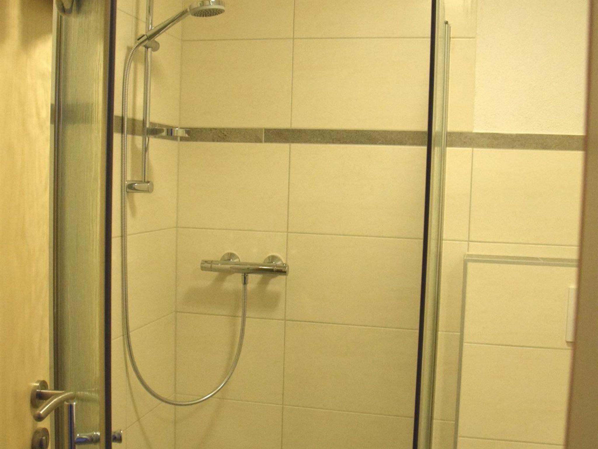 Badezimmer mit großer Dusche, Waschbecken +Wc.