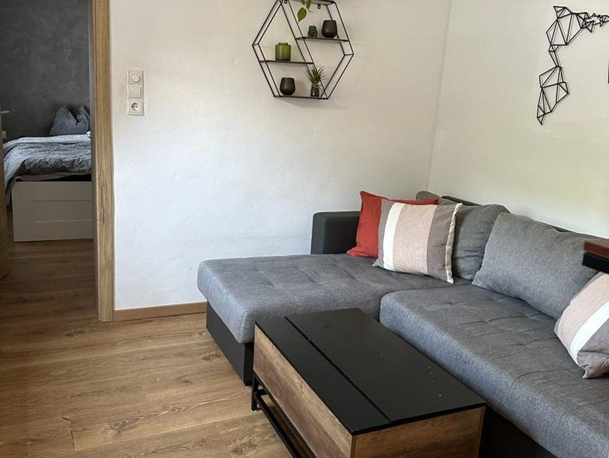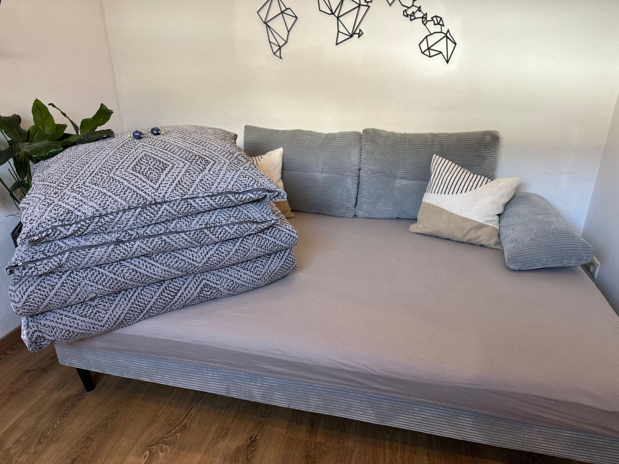 • Wohnzimmer mit ausziehbarer Couch (1,40m) für zwei Kinder oder ein Pärchen