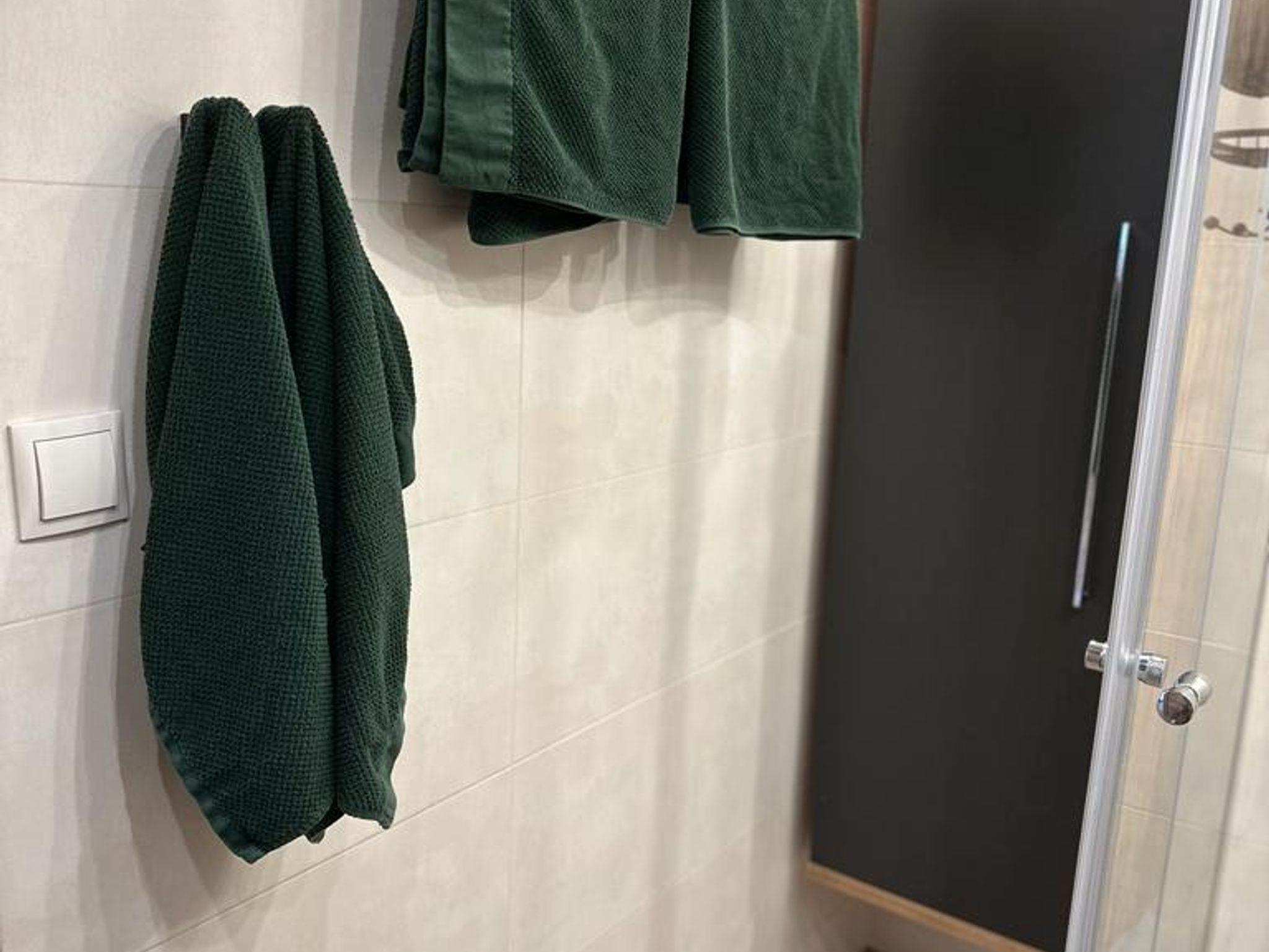 • Badezimmer mit Haartrockner, frischen Hand- und Duschtüchern, Shampoo, Duschgel