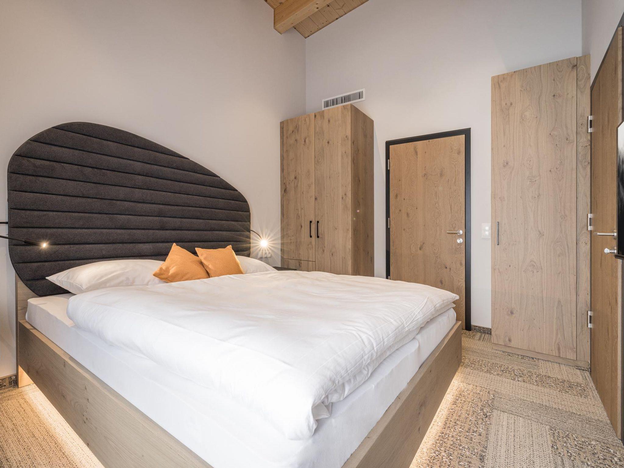63 m², Master-Schlafzimmer mit Bad inklusive Badewanne und direktem Zugang zur Terrasse/Balkon mit bequemen Sitzgelegenheiten, weiteres King Size-Schlafzimmer, weiteres Bad mit separater Toilette, großzügiger Wohnraum mit Wohnküche, gemütlichem Essbereich und Wohnzimmer, komfortables Schlafsofa, The Flame™ Kaminfeuer für entspannte Stunden, Weinkühlschrank, Premium Vollausstattung mit hochwertiger Küche: Induktionsherd, Mikrowelle, Geschirrspüler, Kühl- und Gefrierschrank, Kaffeemaschine, Wasserkocher, weitere Geräte, Essbereich „Tiroler Eck“ zum gemütlichen Zusammensitzen, Flat-Screen TV in jedem Zimmer, High-Speed Internetverbindung, En-Suite Badezimmer mit Dusche und WC, Stellplätze in der Tiefgarage mit E-Ladestationen (First come, first serve)