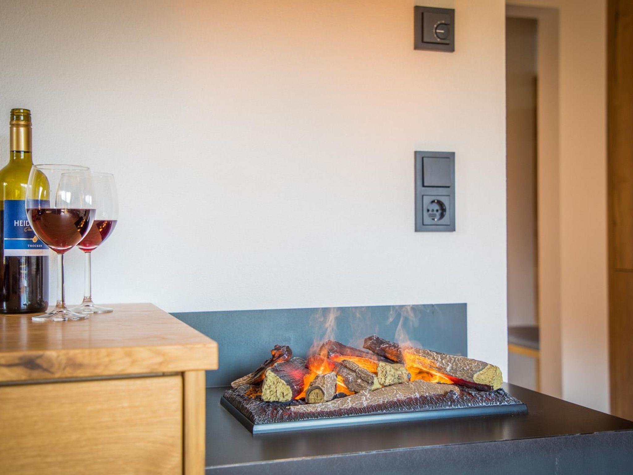 Für ihren Wohnkomfort: heimeliger, gemütlicher Holz Sichtdachstuhl in der ganzen Ferienwohnung, Holz-Fußboden mit Bodenheizung, Holz-Garderobe, gemütliches Sofa(Schlafcouch für 1-2 Personen),mit Sat-TV, Eckbank mit Holztisch und Effektfeuerkamin, gemütlicher Schaukelstuhl, Süd-Balkon,Wlan