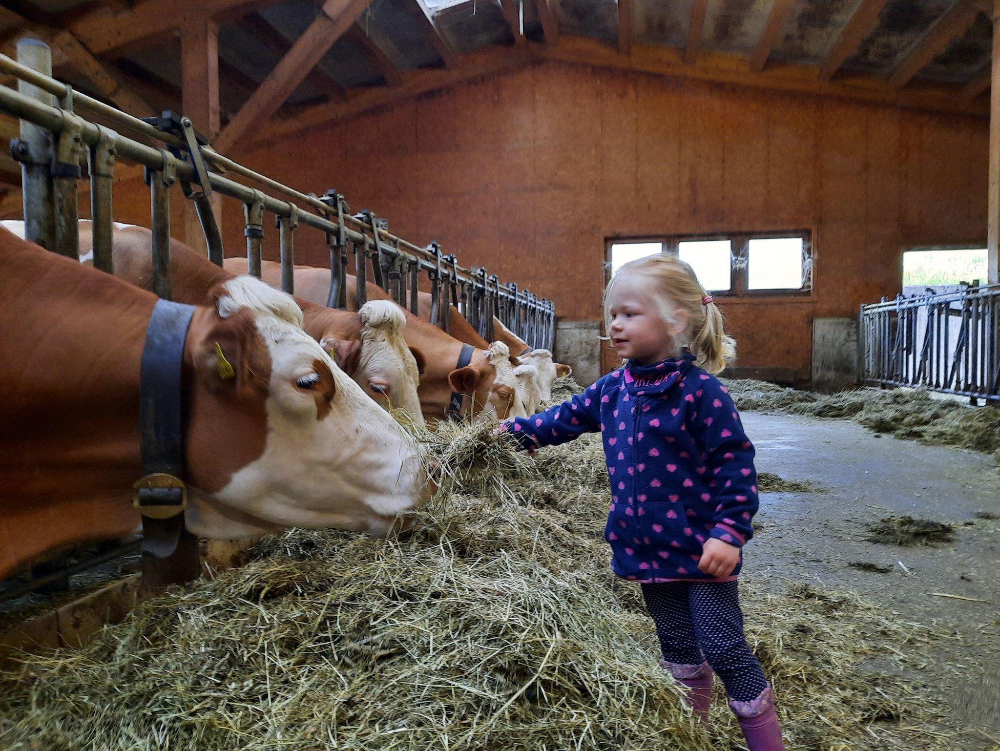 Unser Bio-Bauernhof lässt Kinderherzen höher schlagen, dort wo unsere Katzen, Kälbchen, Hasen, Ziege Heidi, Hühner und Kühe auf die Kinder warten.