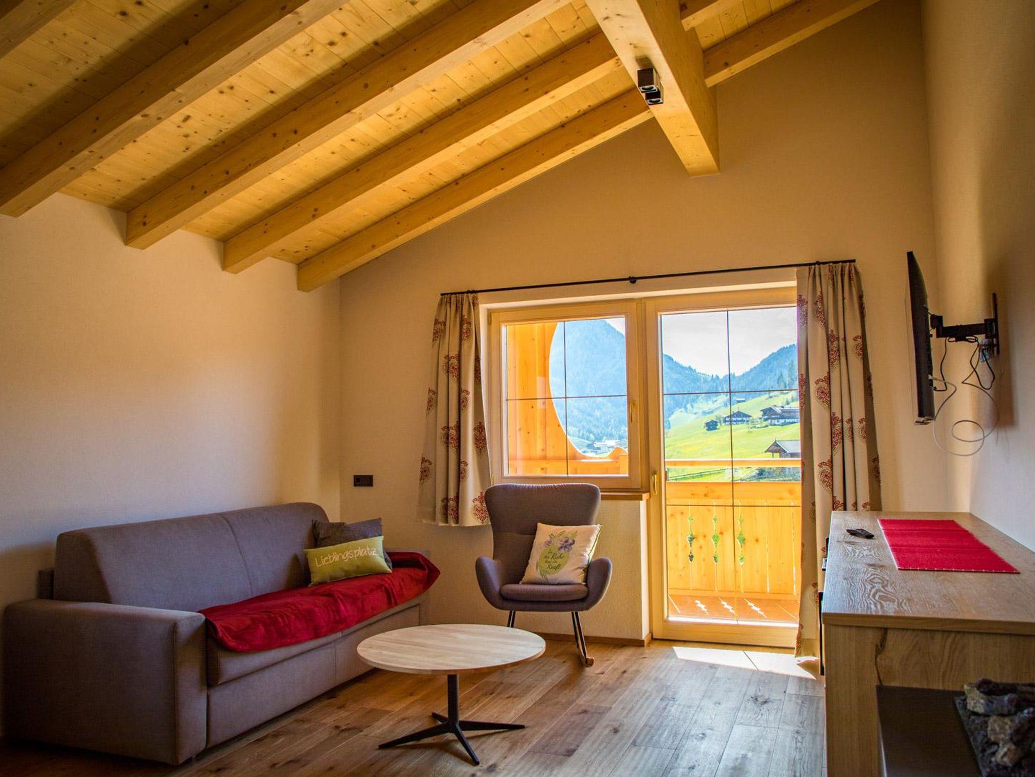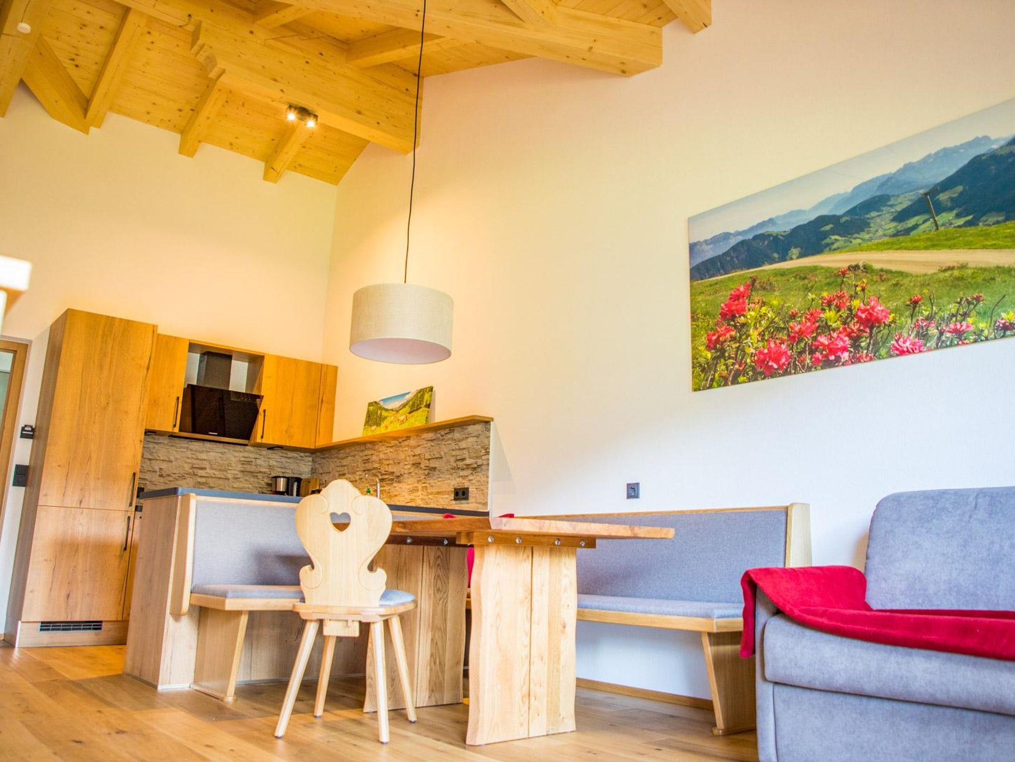 Bergromantik, das 1-Zimmer Appartment ist ein wahrer Holz-Wohntraum mit Sichtdachstuhl, mit TraumAusblick auf die Wildschönauer Bergwelt und mit eigenem Süd-Balkon. Das ideale Urlaubszuhause für Paare oder Eltern mit 1- 2 Kinder(Schlafcouch). Das Appartment befindet sich im 2. Stock - Dachgeschoßwohnung und ist bequem mit einem Personenlift zu erreichen, alles ist barrierefrei!