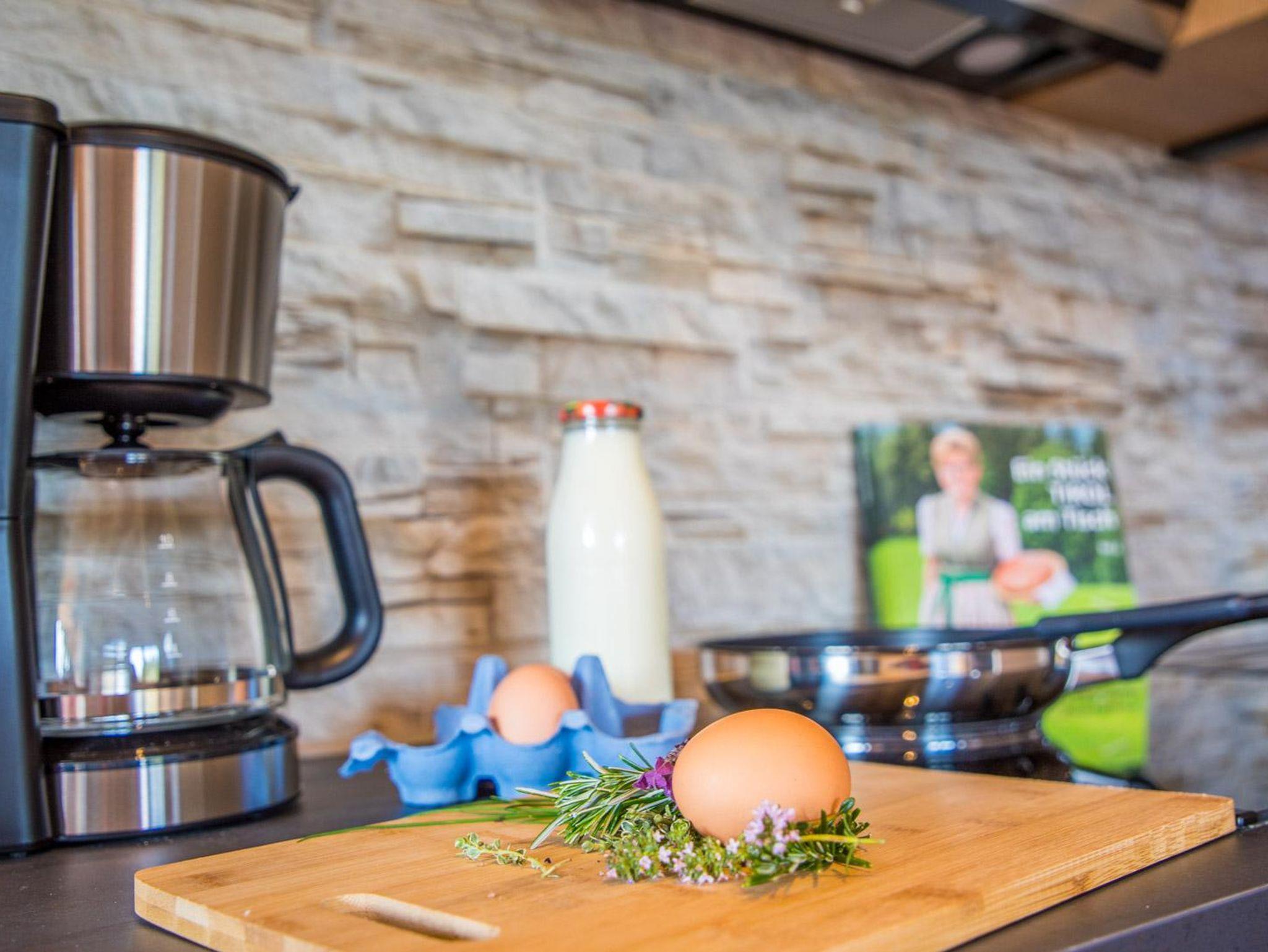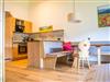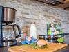 sehr gut ausgestattete Küche, Kühlschrank mit 3 Schubladen Gefrierfach, Kochfeld, Kaffeefiltermaschine, Geschirrspülmaschine,
