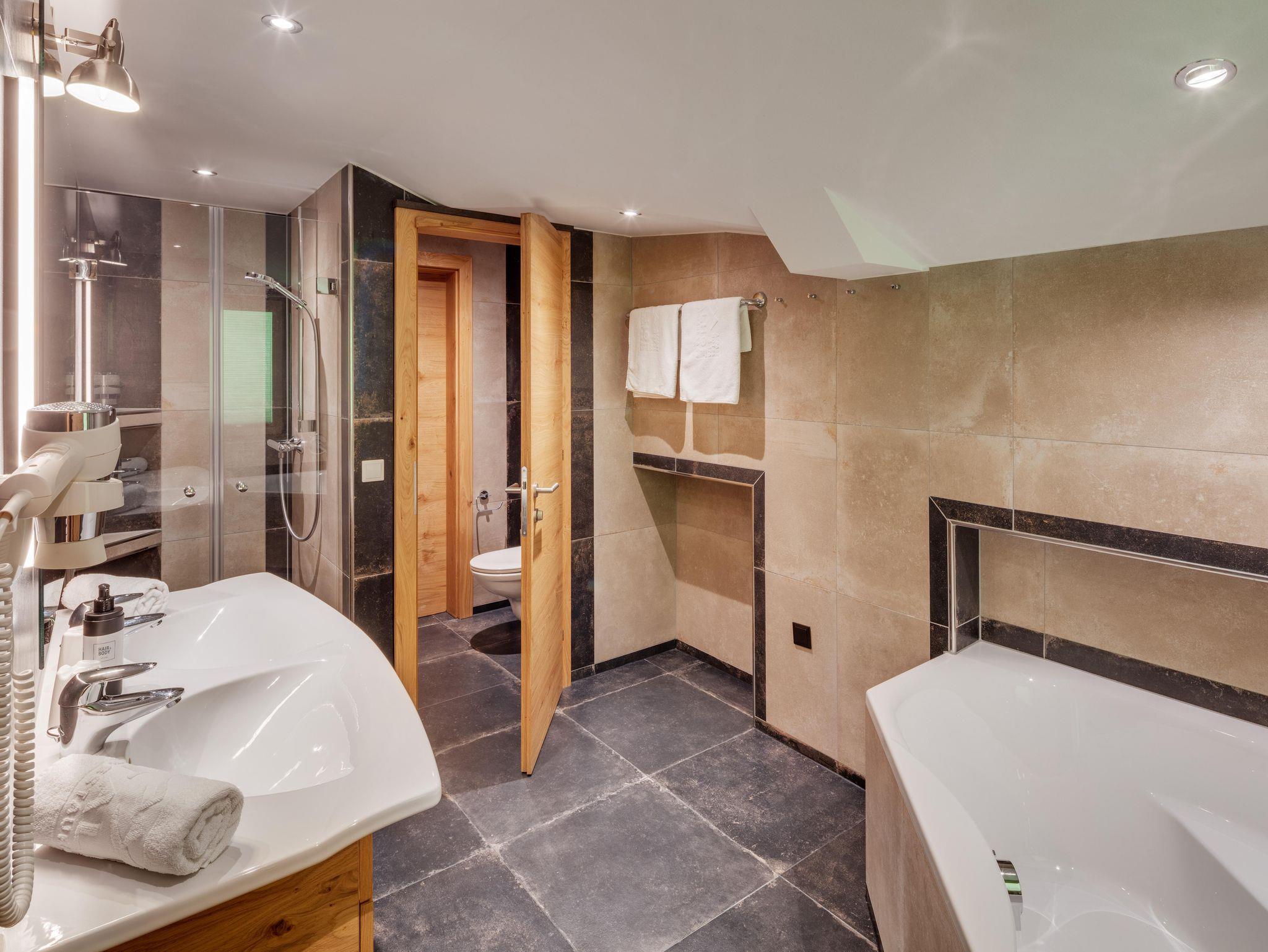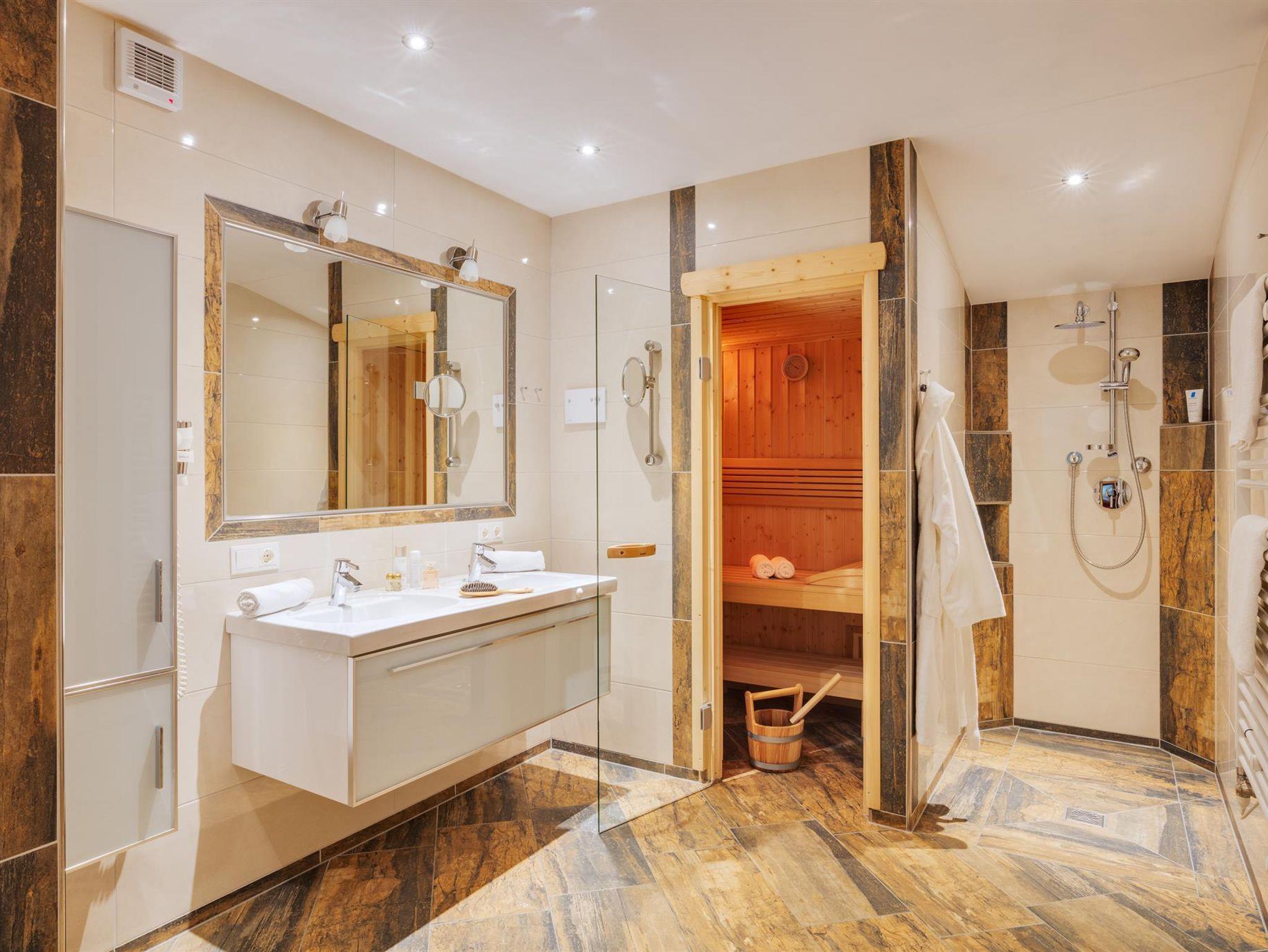 1 Badezimmer mit Badewanne, 1 Badezimmer mit Sauna, Safe, Telefon, WLan und 3 x Flat TV