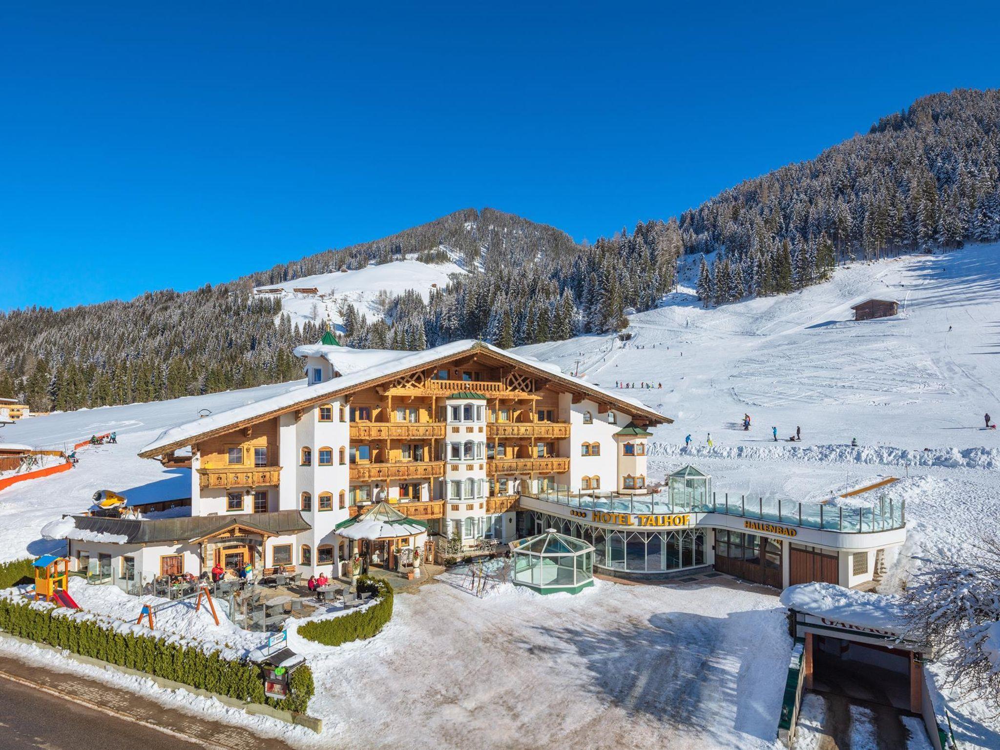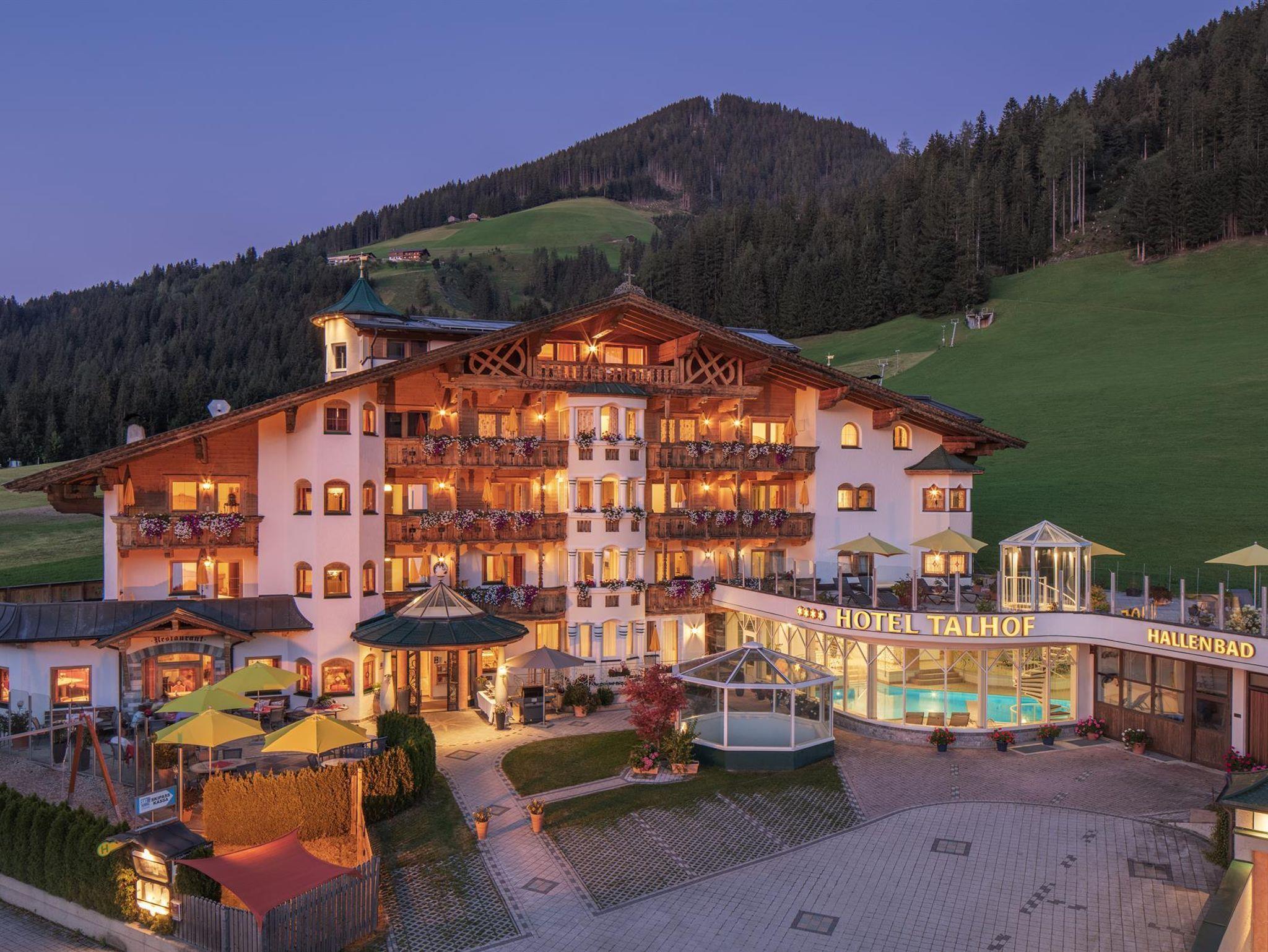 Das Apparthotel Talhof ist ei kleines 4 Sterne Familienhotel mit Hallenbad, Sauna, Damfpbad, Infrarotkabine, Relaxlounge, Ruheraum, Sonnenterrassse, Kinderspielräumen und hoteleigene Schafalm mit Natursee, direkt am 300 km Wandernetz am Sonnenplateau Roggenboden in den Kitzbüheler Alpen.