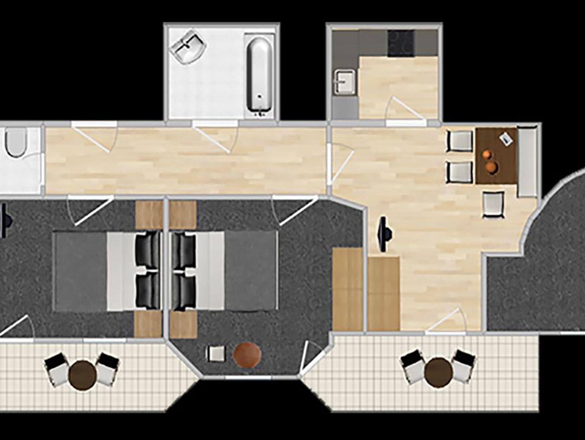 76 m² für 4-6 Personen, 2 kuschelige Doppelzimmer, großer Wohnraum mit Turmerker, Schlafgelegenheit und Kachelofen, Küche mit Geschirrspüler (komplett eingerichtet), 1 Badezimmer (Haarfön vorhanden), separates WC, 1 Badezimmer mit Dusche/WC, SAT-TV (Flat-Screen), Radio, 2 Safe, 2 separate Balkone zur Abendsonne, Gratis WLAN, Bettwäsche- und Handtücherservice, auf Wunsch Brötchenservice, Hochstuhl und Babybett auf Anfrage
