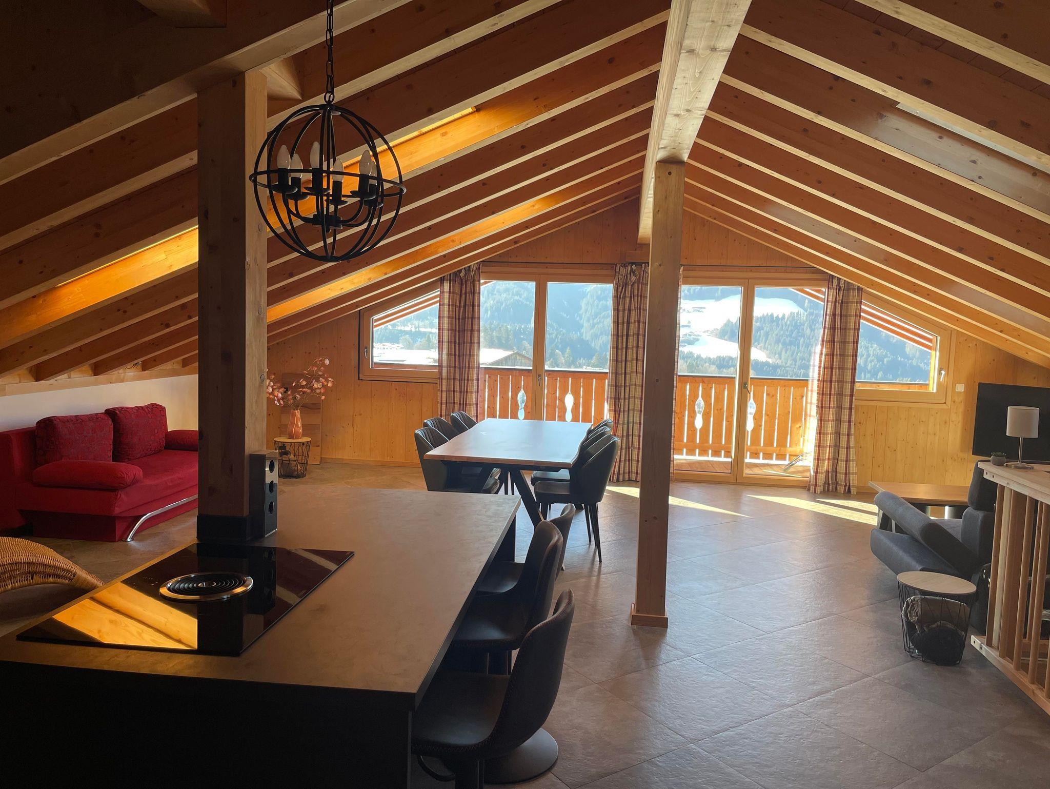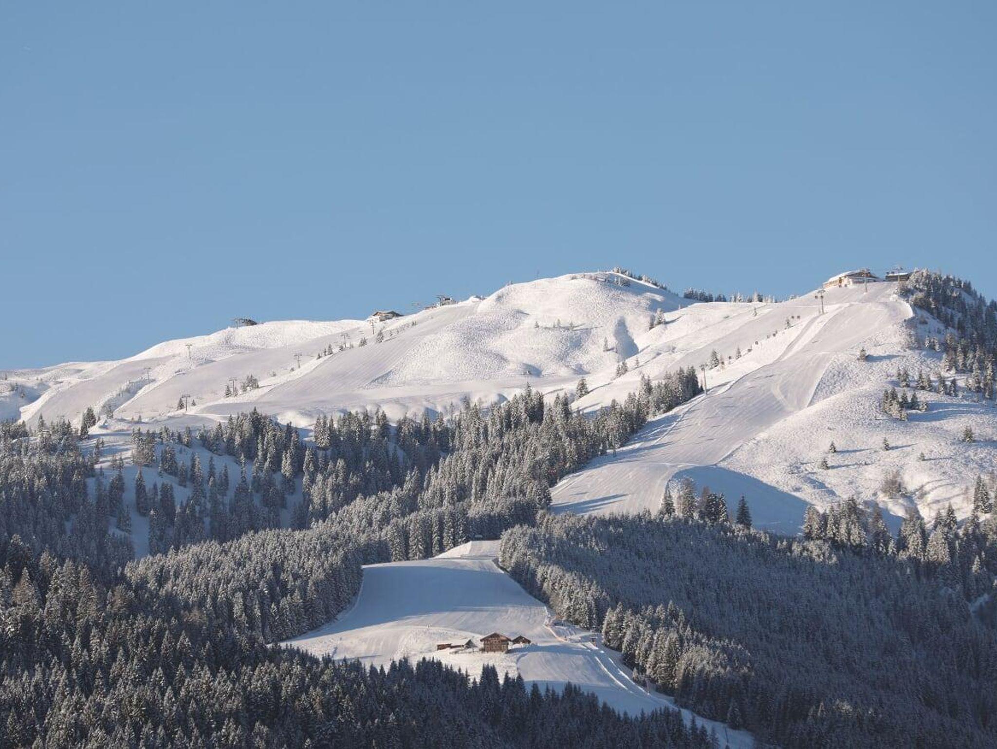 Glasfensterfront mit Panoramabergblick direkt zum Skigebiet Roggenboden