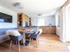 Wohn/Esszimmer mit Flat-TV mit Couch, Esstisch mit Eckbank