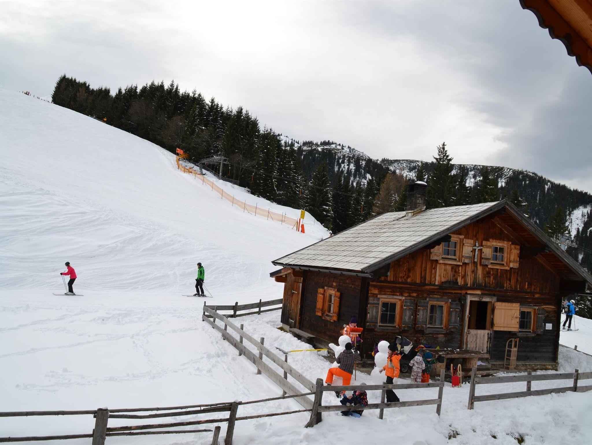 Diese beiden tollen Hütten liegen nahe an der Mittelstation der Schatzberg-Gondelbahn inmitten der Schipiste mit Anfängerliften und Schischulen. Restaurant und Schneebar nebenan. Die 4 km lange Rodelbahn führt von der Hütte bis ins Tal zur Gondel-Talstation.