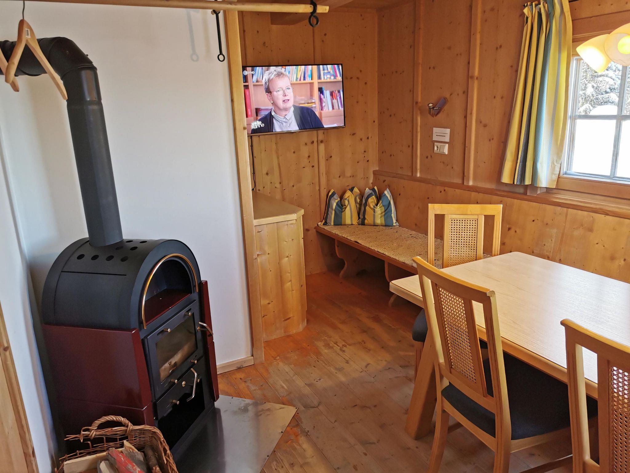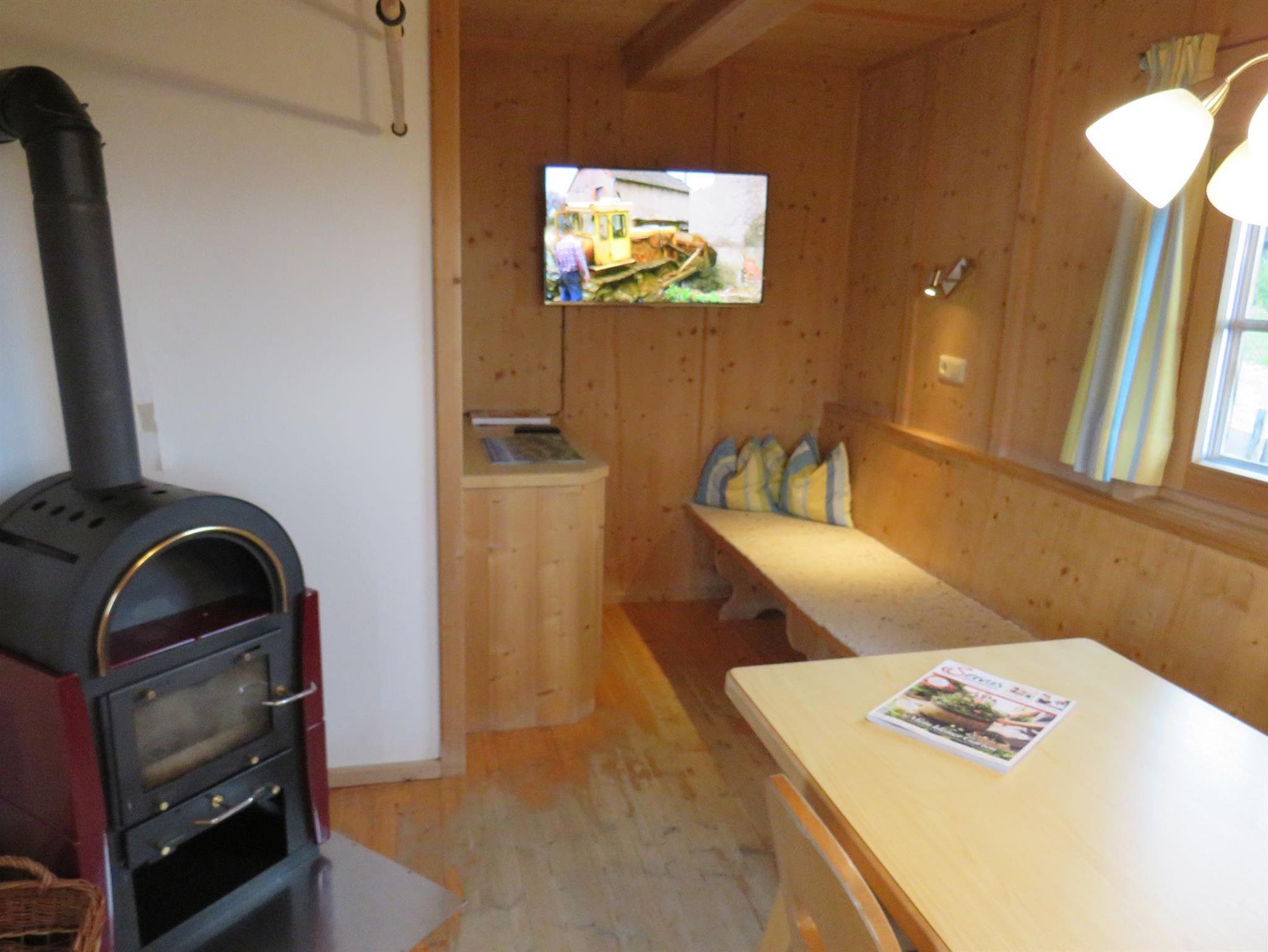 Eine geräumige Küche mit Eßbereich, Holzherd und auch Elektroherd mit Backofen, sowie ein Kühlschrank mit Gefrierteil ist vorhanden, ebenso ein Stüberl mit Sat-TV und Schwedenofen.