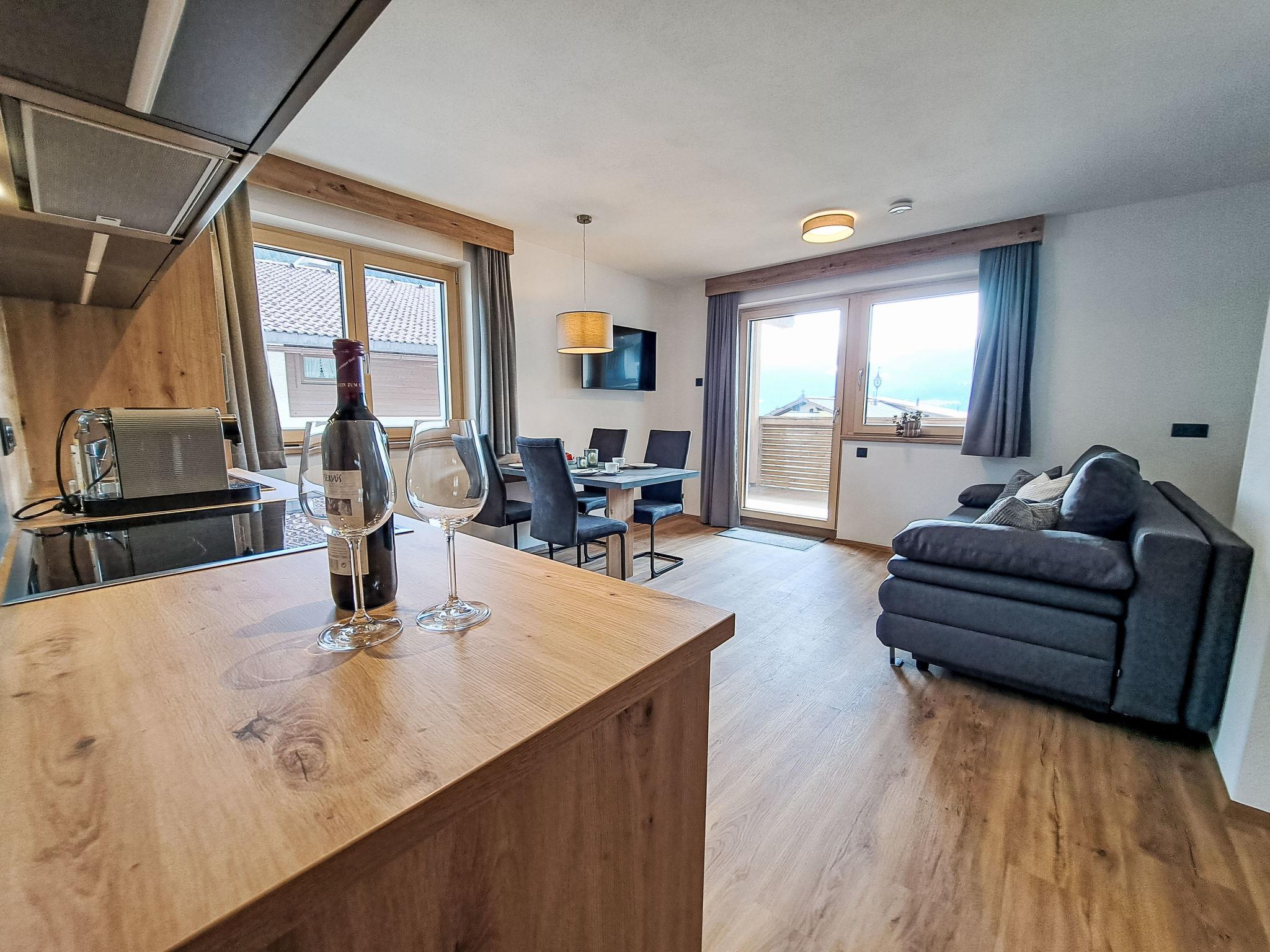 "Rosskopf", 2-room apartment 65 m2. Bright, beautiful and modern furnishings: living/sleeping room with 1 double sofabed, dining table and satellite TV. Exit to the balcony. 1 double bedroom. Open kitchen (oven, dishwasher, 4 ceramic glass hob hotplates, toaster, kettle, electric coffee machine). Shower/WC. Heating. Balcony. Balcony furniture. Beautiful view of the mountains, the countryside and the resort. Facilities: baby cot. Internet (WiFi, free). Please note: non-smokers only. Smoke alarm, fire extinguisher.