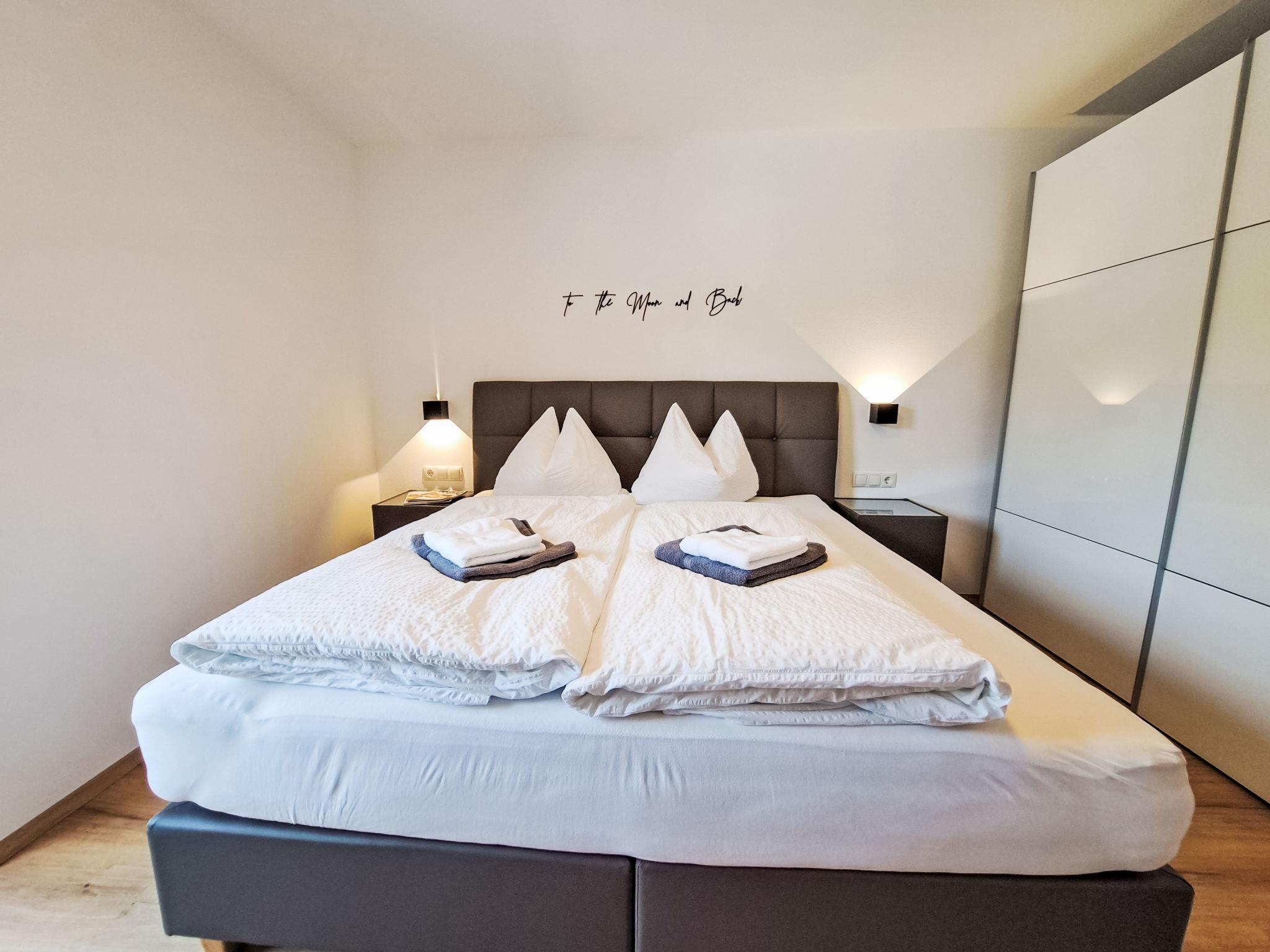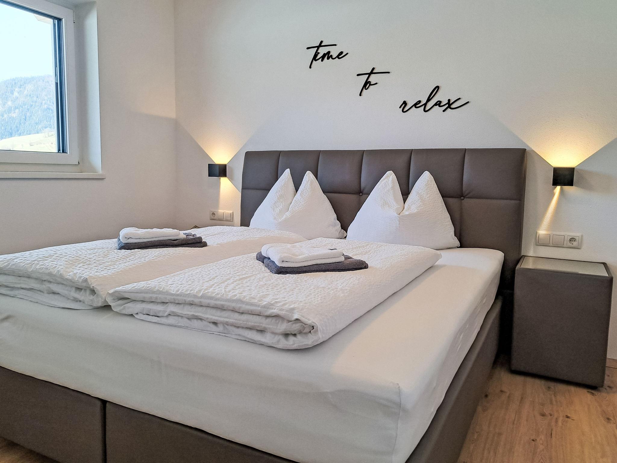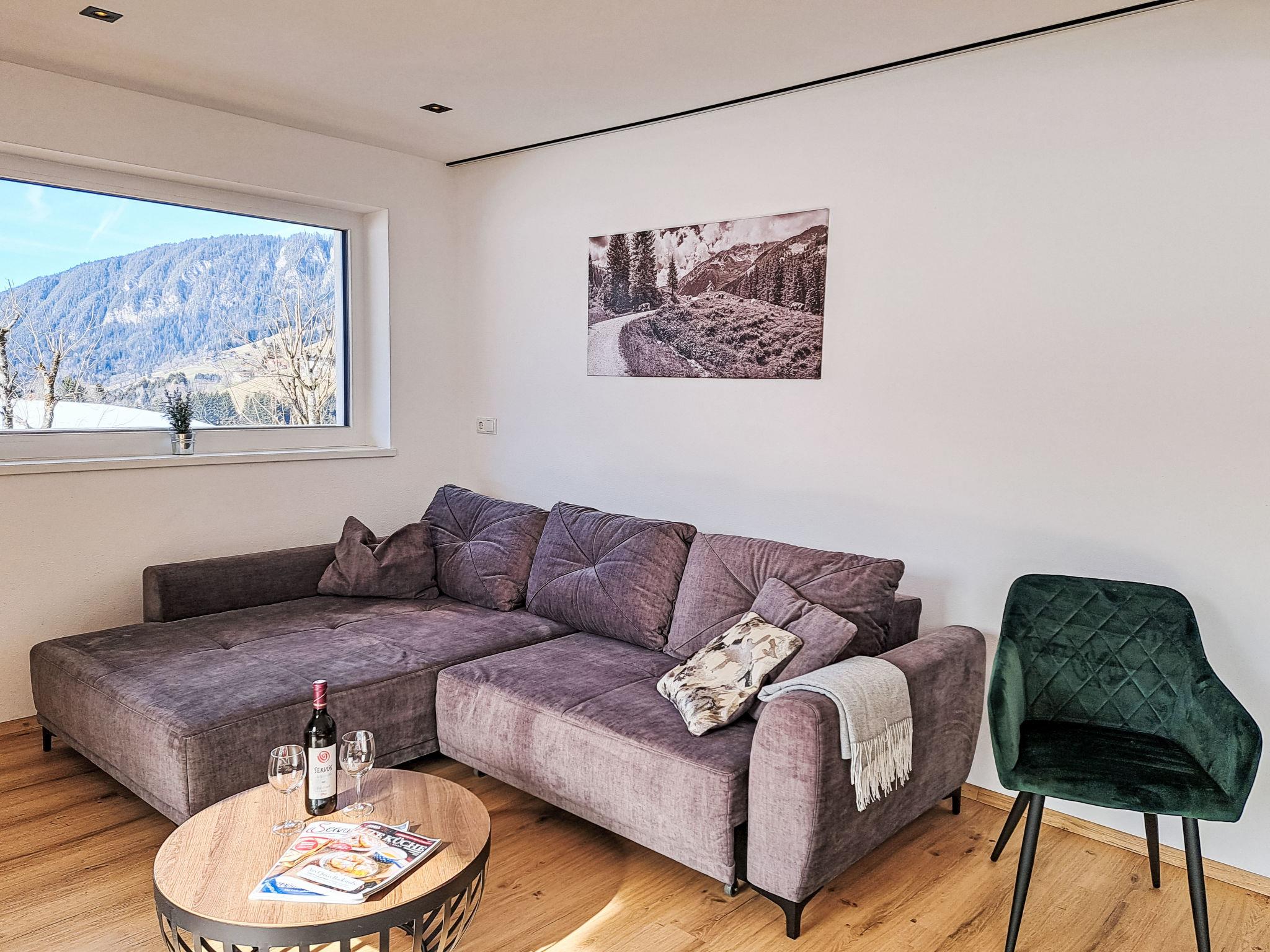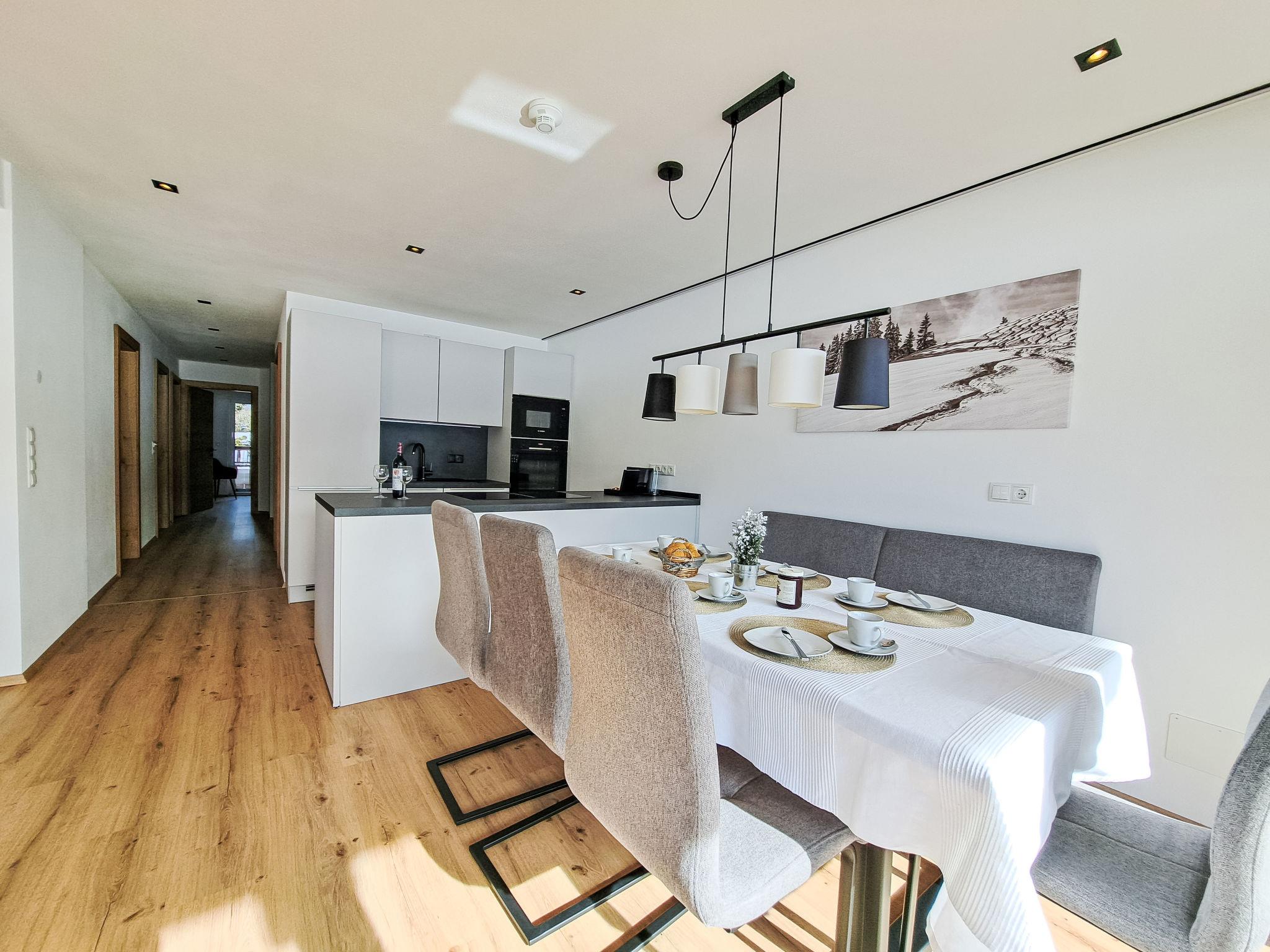"Alpine Residence Auszeit", 4-room apartment 95 m2. Very tasteful furnishings: 3 double bedrooms. Large kitchen-/living room (oven, dishwasher, 4 ceramic glass hob hotplates, toaster, kettle, microwave, freezer, electric coffee machine) with 1 pull-out bed, dining table and satellite TV. Exit to the balcony. 2 showers/WC. Heating. Balcony. Balcony furniture. Very beautiful view of the mountains. Facilities: Internet (WiFi, free). Parking. Please note: suitable for families. Non-smokers only.