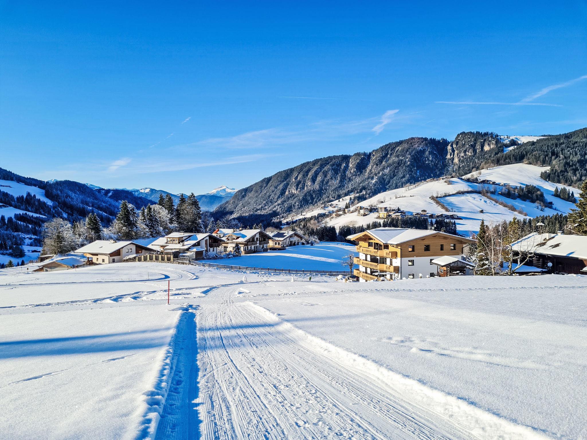 Very modern apartment block, 3 storeys. In the district of Roggenboden, outside the resort Oberau, in a quiet, sunny position, 350 m from the skiing area. For shared use: large garden. Children's playground, petting farm. Private: children's playground, petting farm. In the house: storage room for bicycles, storage room for skis, central heating system, ski boot dryer. Available: sledges. In Winter: please take snow chains. Parking. Shop 2 km, supermarket 2 km, restaurant 350 m, bus stop 200 m, outdoor swimming pool 5 km. Gondola lift 3.5 km, ski rental 3 km, ski bus stop 20 m, ski school 3.5 km, children's ski school 3.5 km. Nearby attractions: Alpincoaster und Familienland Drachental, Bergbauernmuseumd z'Bach, Tiroler Holzmuseum, Kufstein, Rattenberg, Innsbruck. Well-known ski regions can easily be reached: Ski Juwel Alpbachtal/Wildschönau, Ski Welt Wilder Kaiser/Brixental, Skigebiet Roggenboden 350 m. Well-known lakes can easily be reached: Schwarzsee Kitzbühel, Hechtsee, Achensee. Hiking paths: Schatzberg, Hohe Salve. Large property with a petting zoo and a beautiful playground.