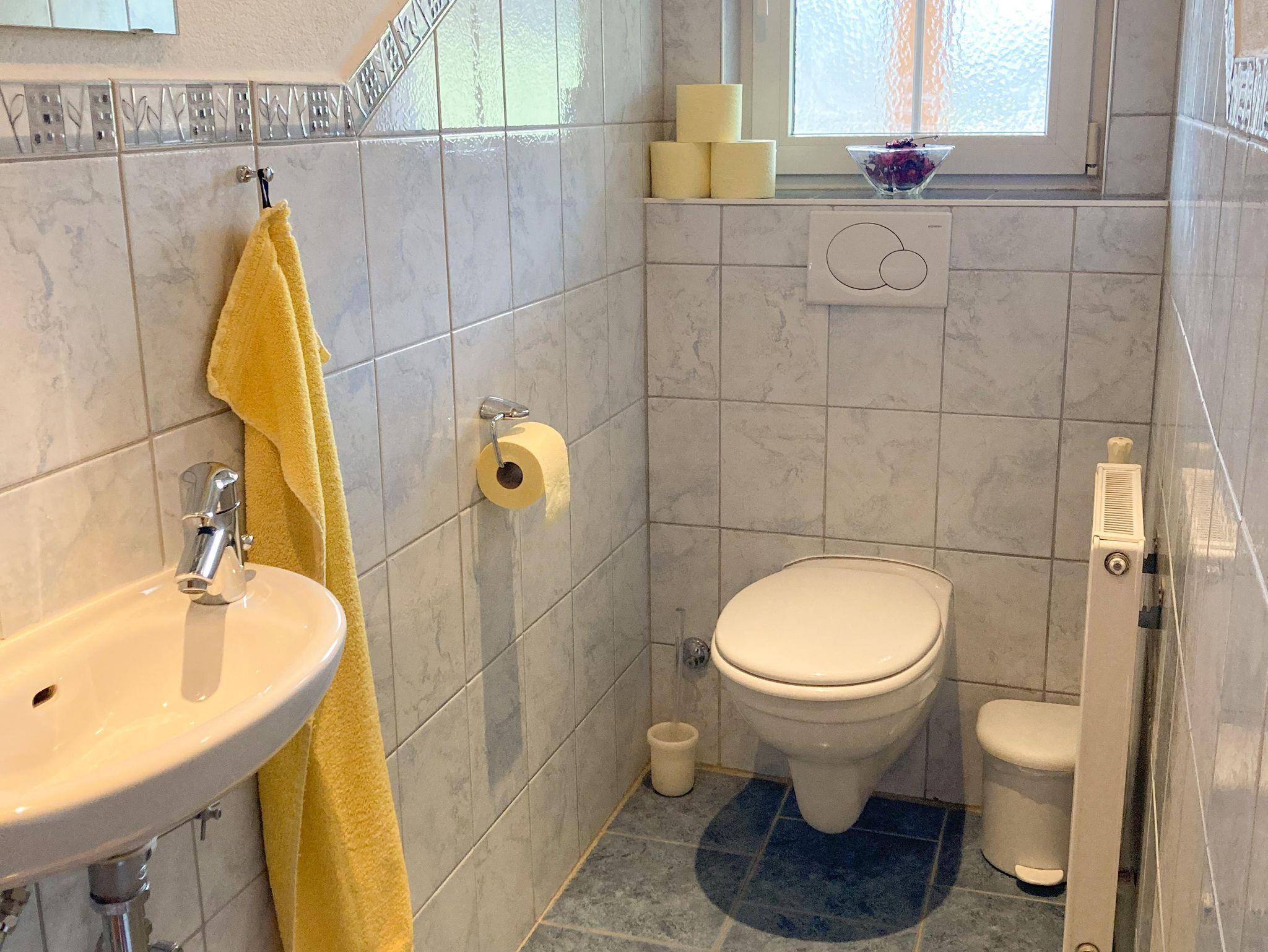 • 1 Bad mit walk-in Dusche, Waschtisch und Föhn