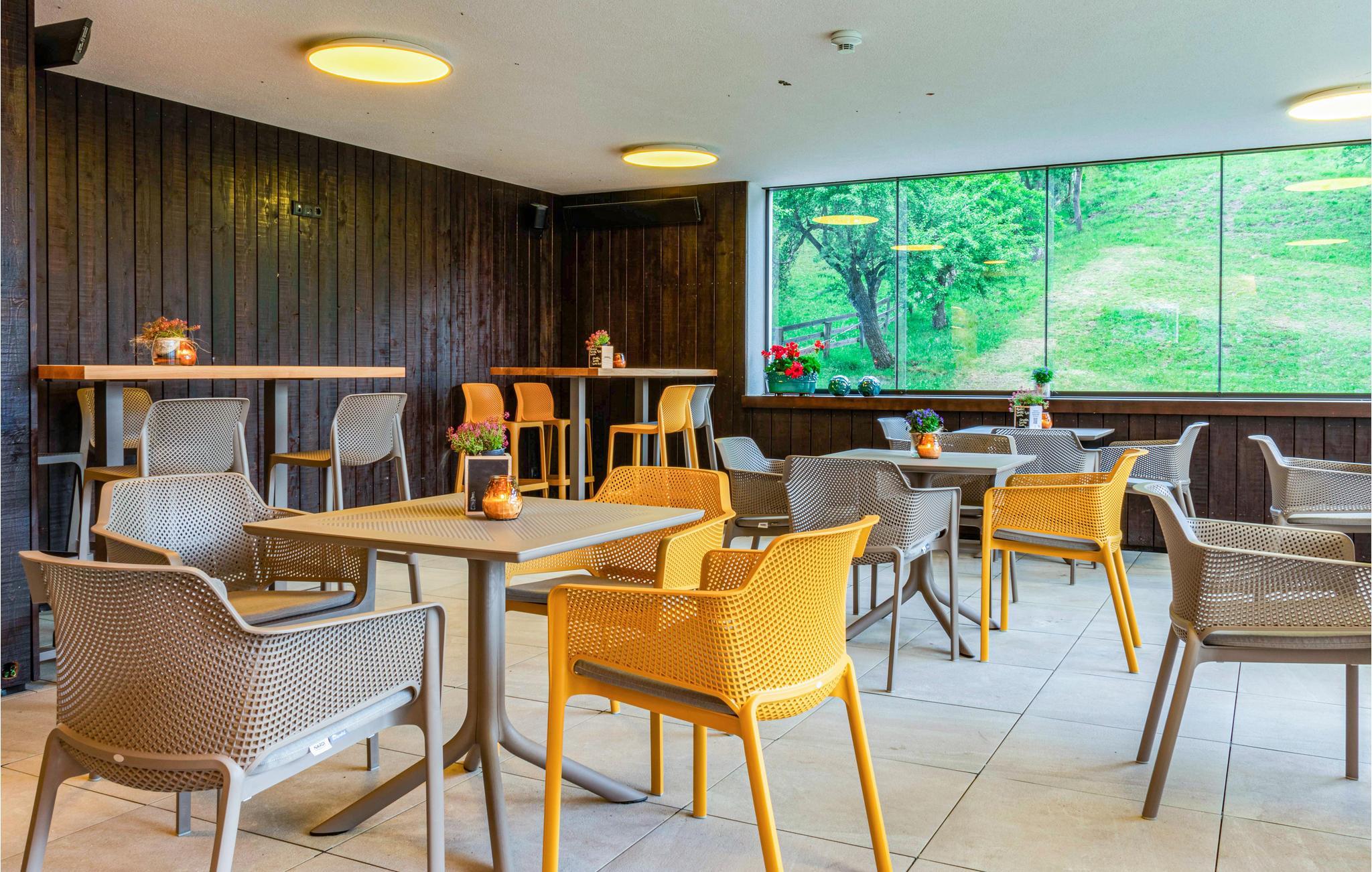 Hvis I foretrækker at få maden serveret, kan I købe jer til husets forplejningstilbud. Nyd samværet med de andre gæster og den hyggelige restaurant eller på den store terrasse med fantastisk udsigt til landskabet. Læn jer tilbage i liggestolene med en god bog og en dejlig kop kaffe ved hånden. Når I kigger op fra siderne, ser I ud på et helt enestående panorama.