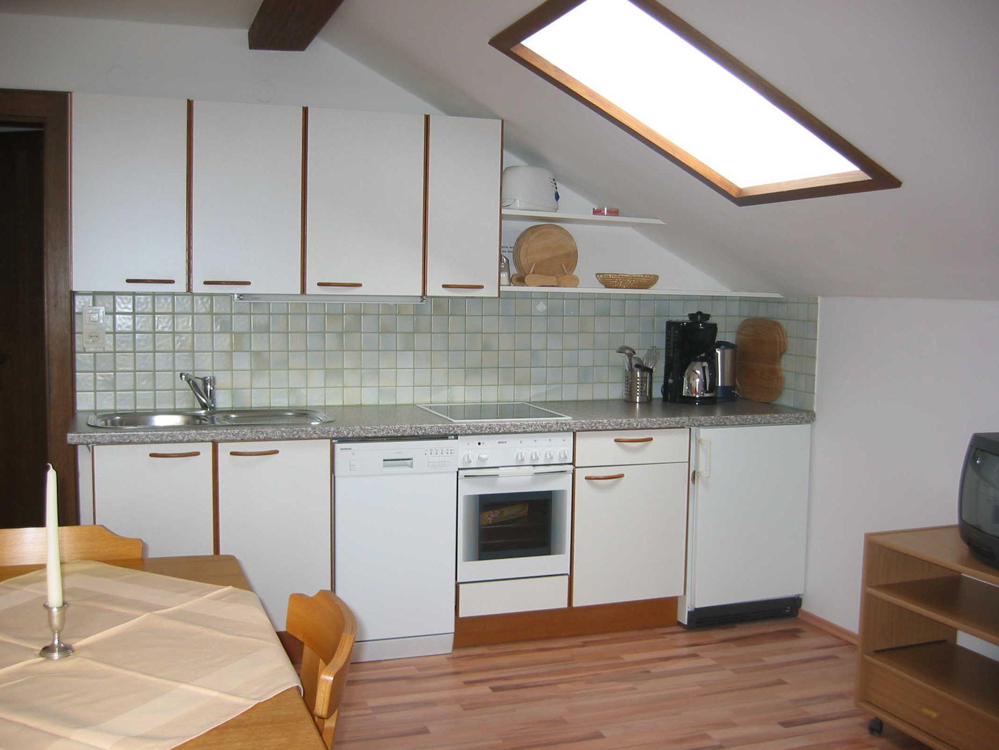 Die Wohnung (Schlafzimmer, Wohnschlafzimmer mit Essecke und Einbauküche) ist neu und überdurchschnittlich komfortabel eingerichtet mit traumhafter Lage mit Blick in die Natur.