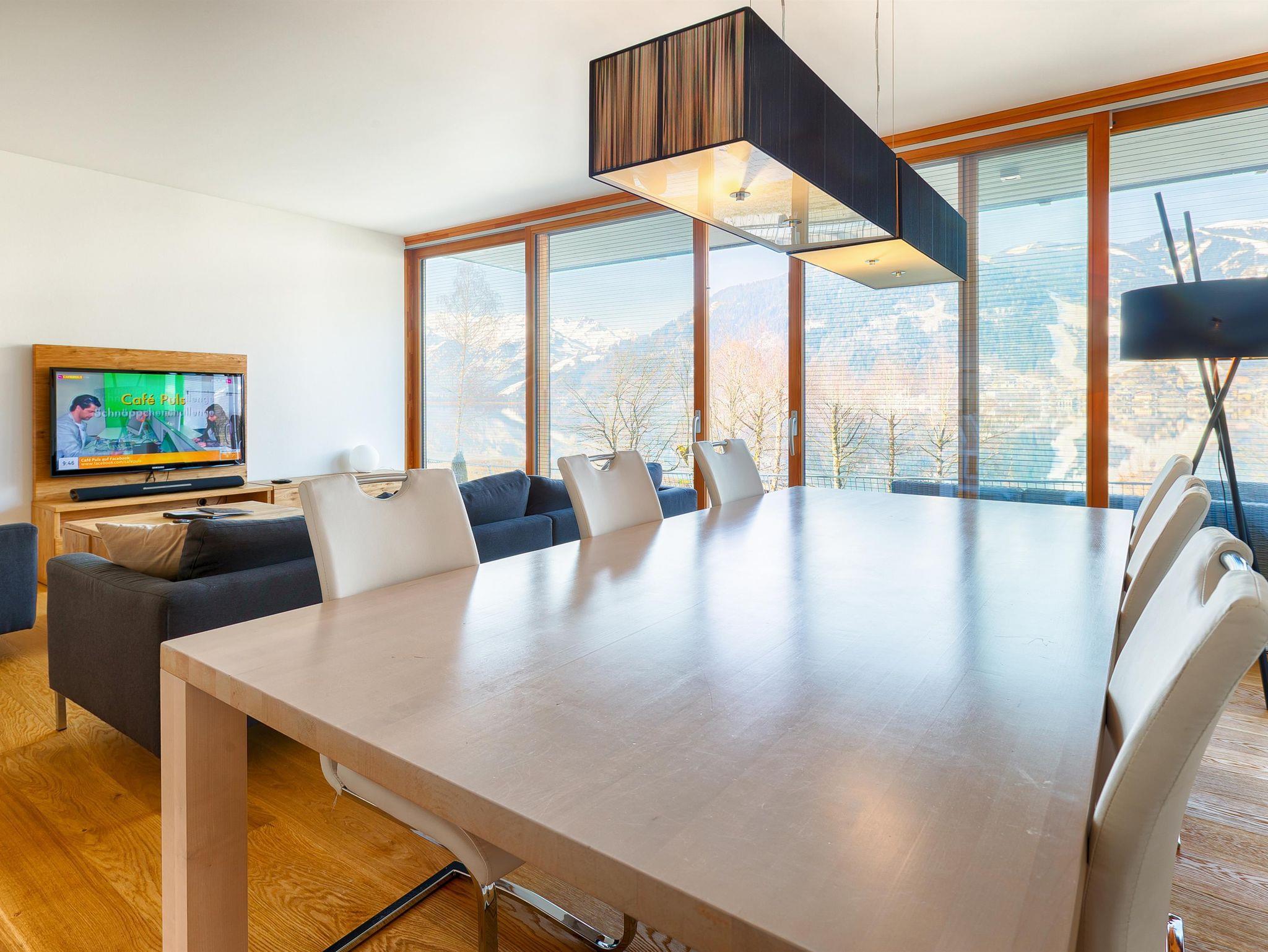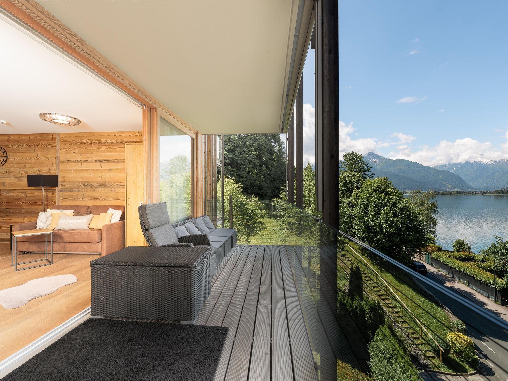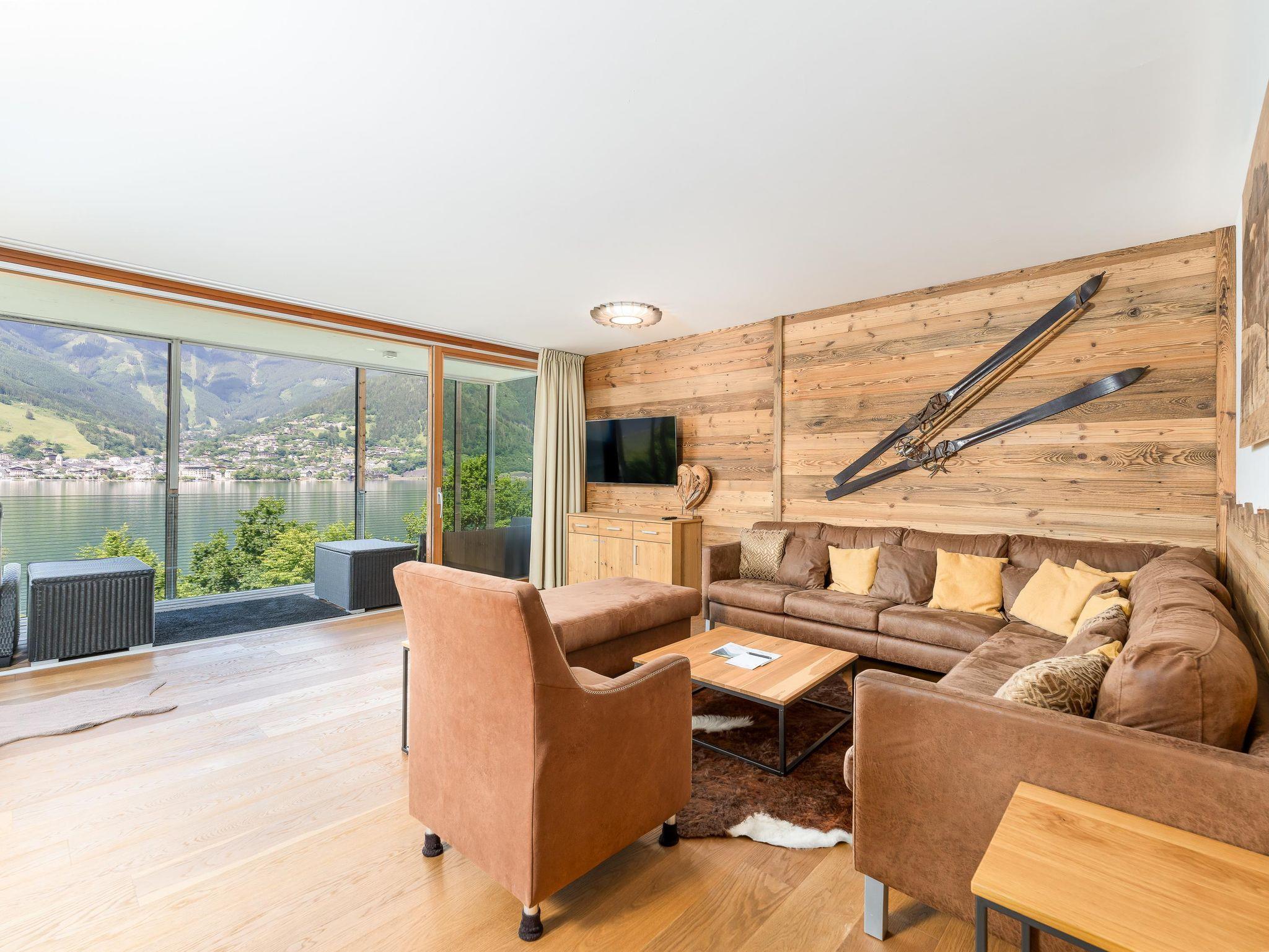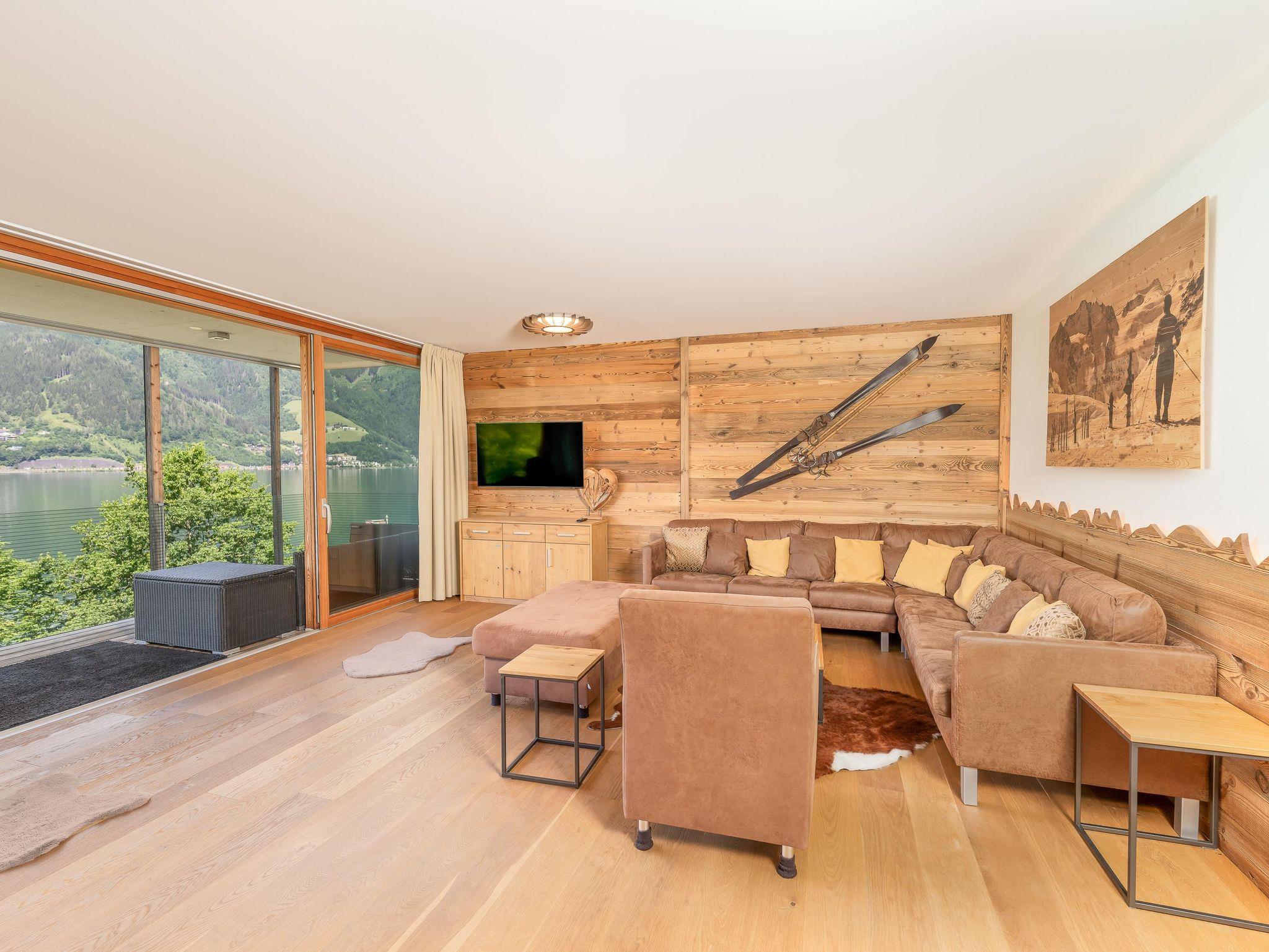 Das neu renovierte Deluxe Apartment mit 85 m2 verfügt über zwei Schlafzimmer, mit jeweils einem Doppelbett, sowie zwei Badezimmer mit Badewanne und Dusche und einem getrennten WC. Das geräumige und großzügige Wohnzimmer im alpenländischen Stil hat einen großen Esstisch und eine offene Designerküche. In der gemütlichen und großzügigen Sitzecke erschließt sich ein wundervoller Blick auf den See und die umliegenden Berge. Von den beiden Balkonen aus genießt man ebenfalls einen herrlichen Blick auf den Zeller See, die Schmittenhöhe und das Kitzsteinhorn.