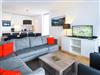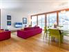 Das Apartment verfügt über drei Schlafzimmer, davon zwei Schlafzimmer mit Doppelbett und ein Schlafzimmer mit zwei Einzelbetten. In dieser Wohnung gibt es zwei Badezimmer mit Badewanne oder Dusche und WC. Das geräumige Wohnzimmer verfügt über einen großen Esstisch und eine offene Designerküche. Der Balkon mit herrlichem Blick auf den See ist vom Wohnzimmer aus zugänglich.