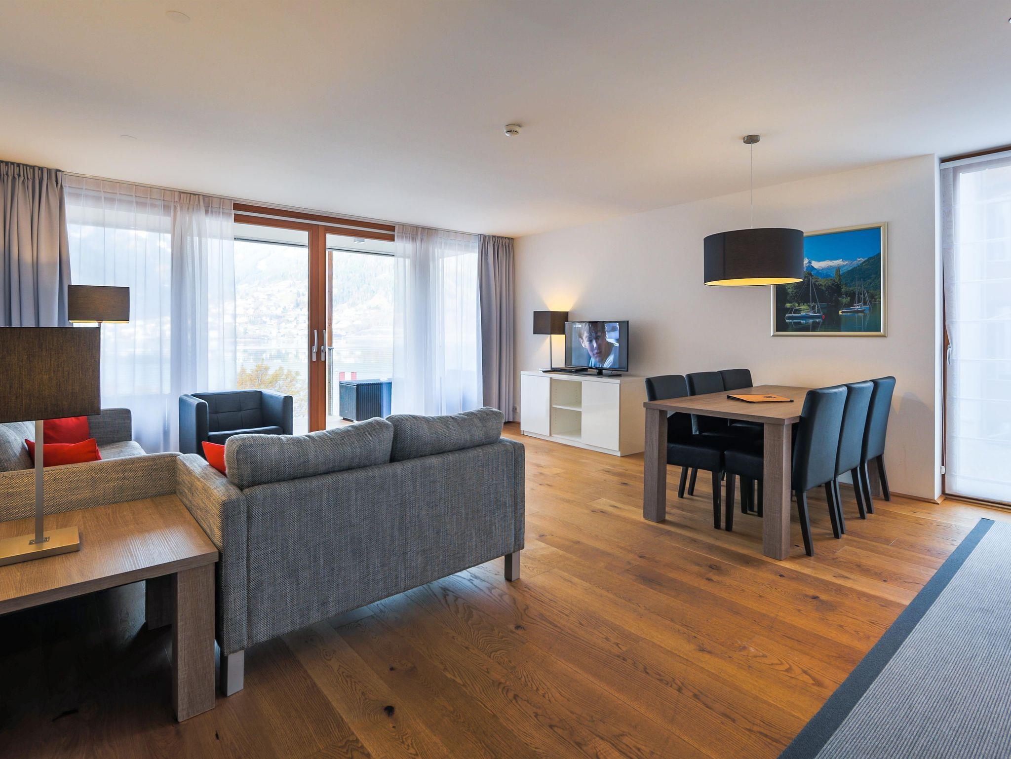 • Modern gestaltete Zimmer und Suiten mit See- und Bergblick