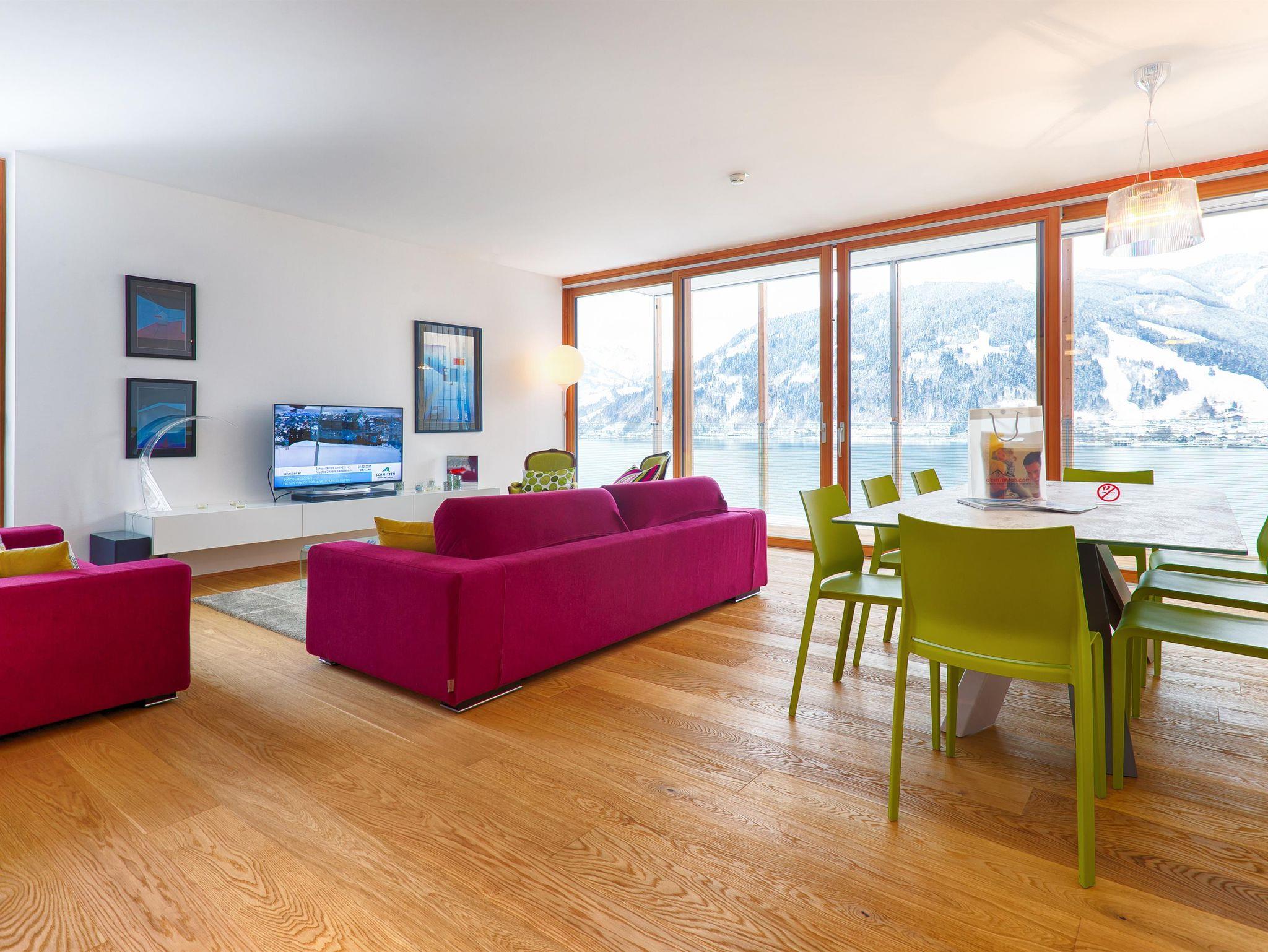 Direkt am Ufer des Zeller Sees, eingerahmt von Berggipfeln und mit Blick auf das Wasser, erwartet dich die Residence Bellevue - by Alpin Family. Diese elegante Unterkunft bietet Zimmer sowie Suiten mit zwei bis vier Schlafzimmern und liegt nur fünf Autominuten vom Zentrum Zell am See entfernt.