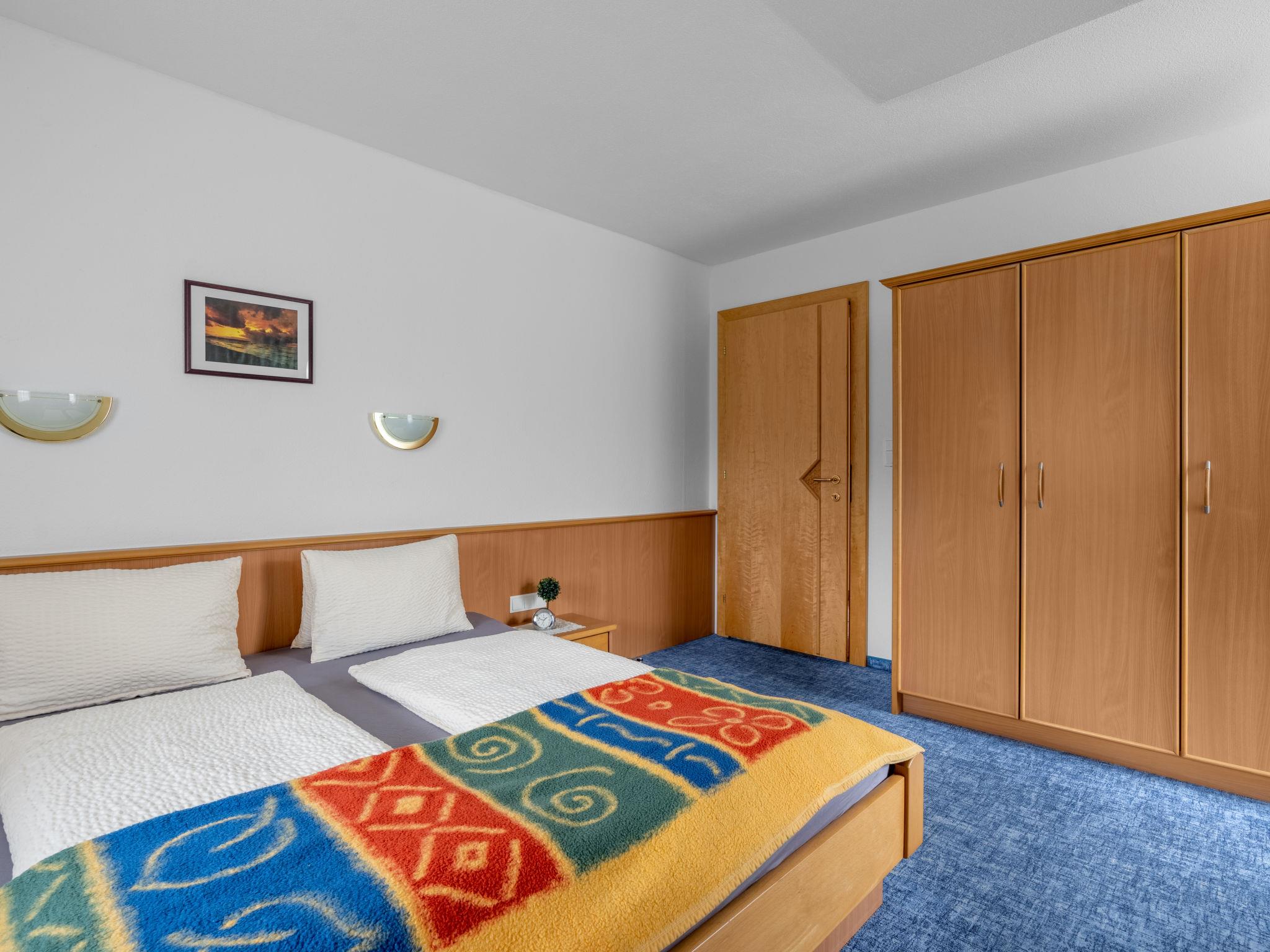 "Markus", 4-room apartment 90 m2 on 1st floor. Bright, practical furnishings: 1 room with 1 bed and 1 double bed. Exit to the balcony. 1 double bedroom. Exit to the balcony. 1 room with 2 beds. Exit to the balcony. Kitchen-/living room (oven, dishwasher, 4 ceramic glass hob hotplates, toaster, kettle, electric coffee machine) with dining table and satellite TV. Bathroom, sep. WC. Oil heating. Carpet. 2 balconies. Balcony furniture. Beautiful view. Facilities: Internet (WiFi, free). Please note: non-smokers only. Smoke alarm, fire extinguisher. When there are less than the maximum number of guests staying at the property, not all of the bedrooms will be available for use.