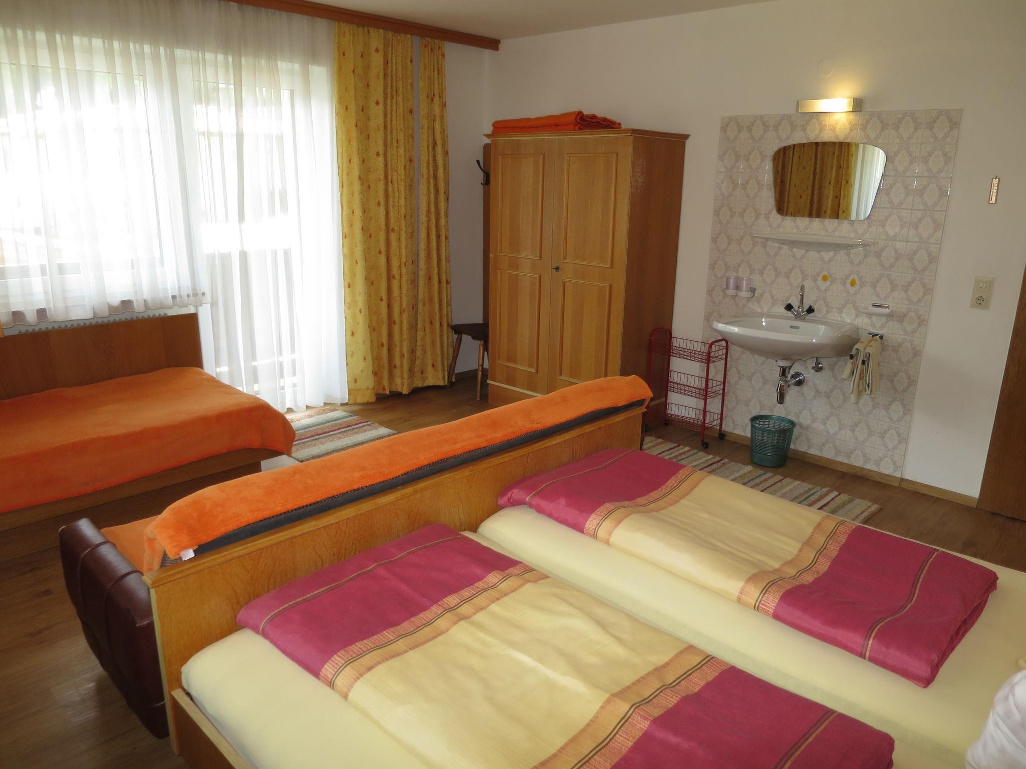 "Elisabeth", 5-room apartment 100 m2 on 1st floor. Practical furnishings: 2 double bedrooms, each room with hand-basin. Exit to the balcony. 1 double bedroom with hand-basin and shower/WC. Exit to the balcony. 1 room with 1 bed, 1 sofabed, 1 double bed and hand-basin. Exit to the balcony. Kitchen-/living room (4 hot plates, oven, dishwasher, toaster, kettle, microwave, electric coffee machine) with dining nook and satellite TV. Bath/shower, sep. WC. Carpet. Balcony. Balcony furniture. Beautiful view of the mountains. Facilities: Internet (WiFi, free). Please note: non-smokers only. Smoke alarm, fire extinguisher. When there are less than the maximum number of guests staying at the property, not all of the housing units will be available for use.