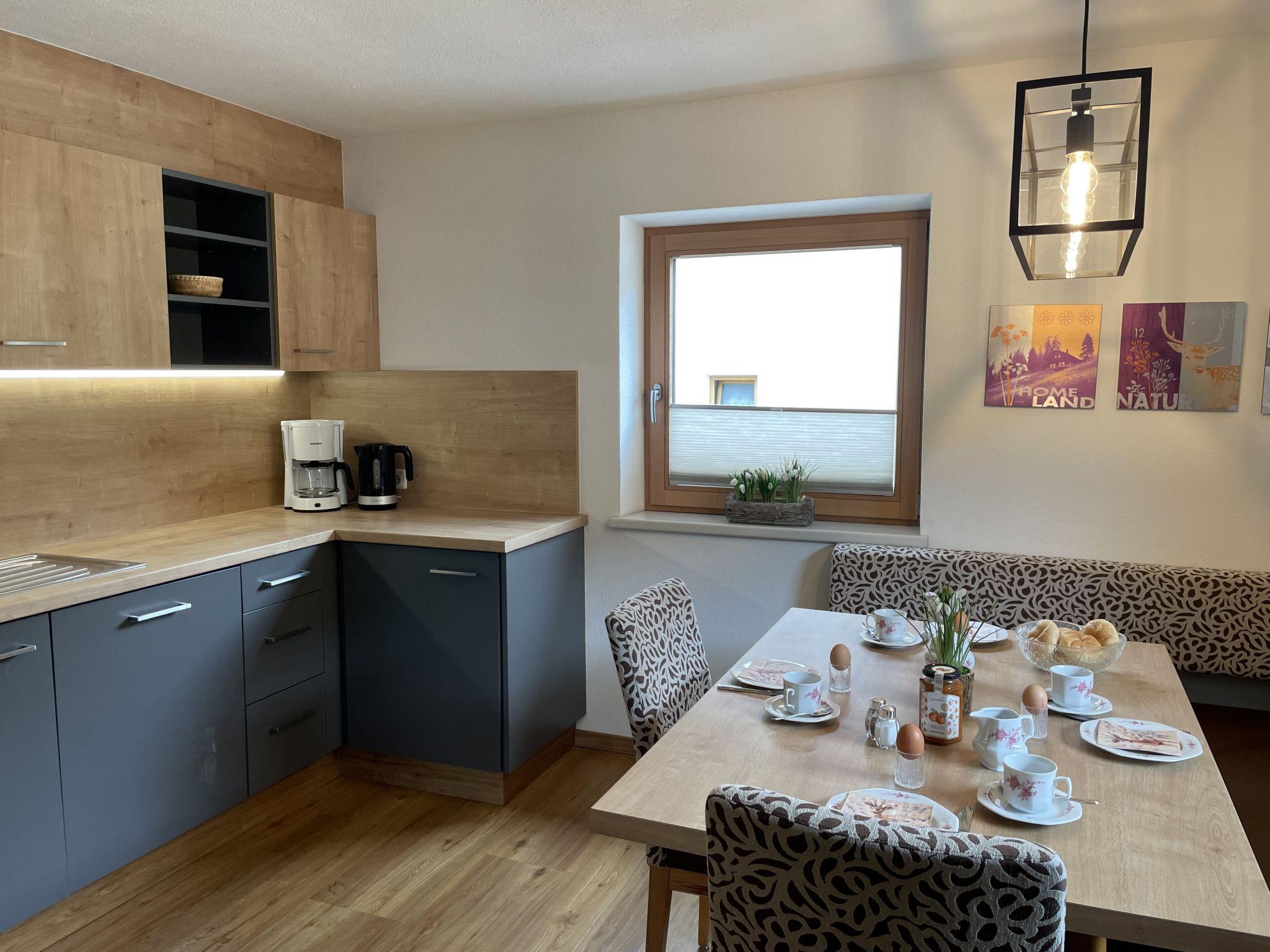 "Eberharter", 3-room apartment 80 m2, on the upper ground floor. Object suitable for 4 adults + 2 children. Renovated in 2018, cosy and wooden furniture furnishings: living/sleeping room with 1 double sofabed and satellite TV. 2 double bedrooms. Kitchen (oven, dishwasher, 4 ceramic glass hob hotplates, toaster, kettle, freezer, electric coffee machine) with dining nook. Bath/WC. Wooden floors. Facilities: Internet (WiFi, free). Please note: non-smokers only. Private entrance, fire extinguisher.