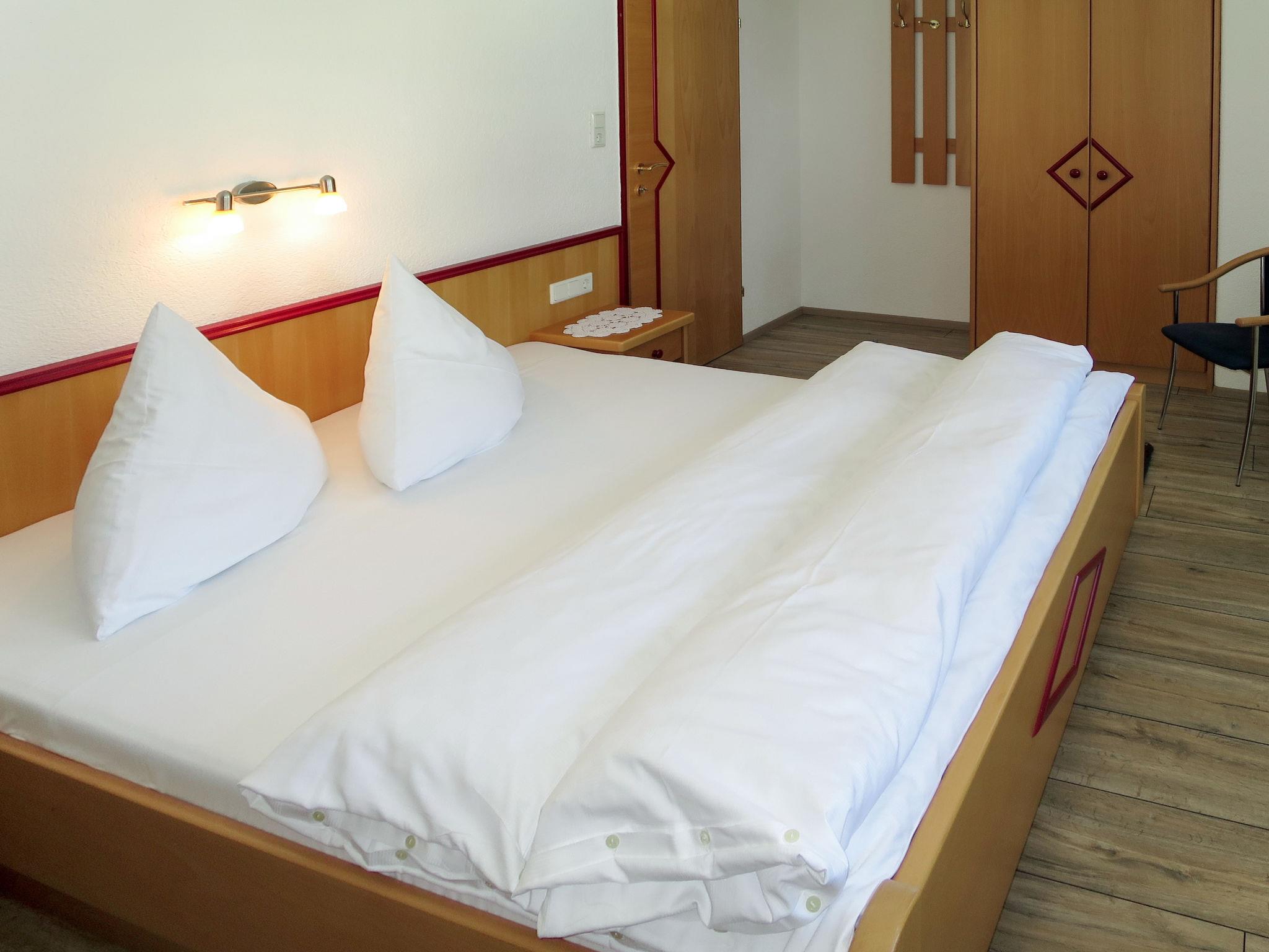 "3er Wohnung", 2-room apartment 43 m2 on 1st floor. Bright, cosy furnishings: 1 double bedroom. Kitchen-/living room (4 hot plates, dishwasher, toaster, kettle, electric coffee machine) with 1 double sofabed, dining nook and satellite TV (flat screen). Exit to the balcony. Shower/WC. Heating. Balcony 4 m2. Balcony furniture. Facilities: Internet (WiFi, free). Please note: non-smokers only. Smoke alarm, fire extinguisher.