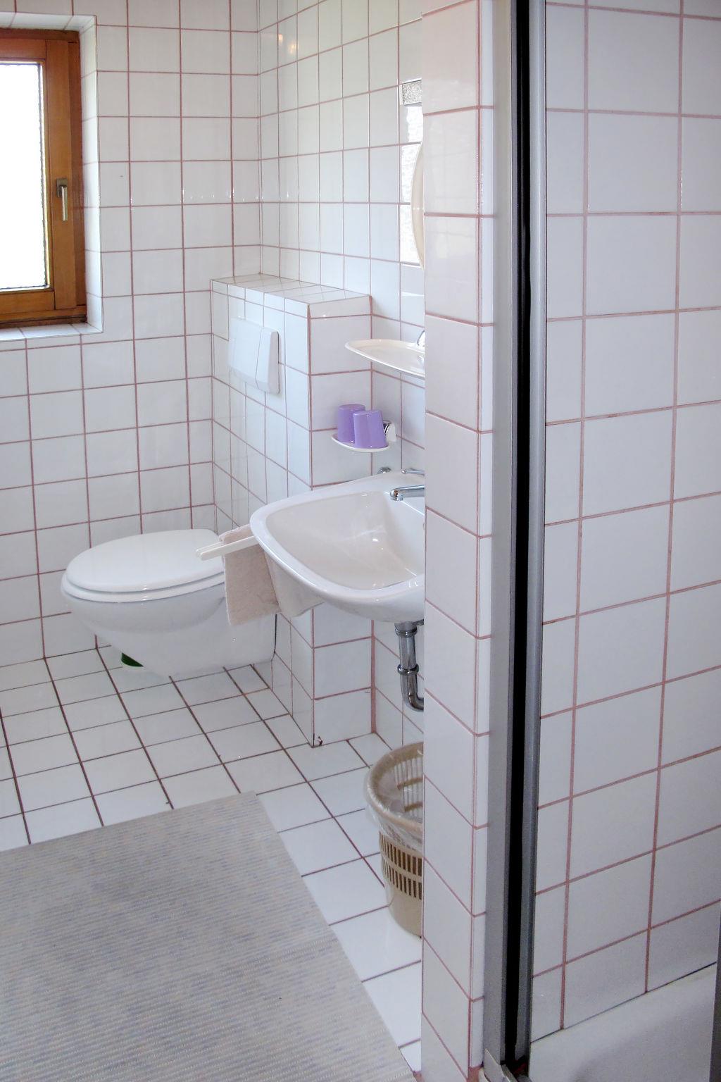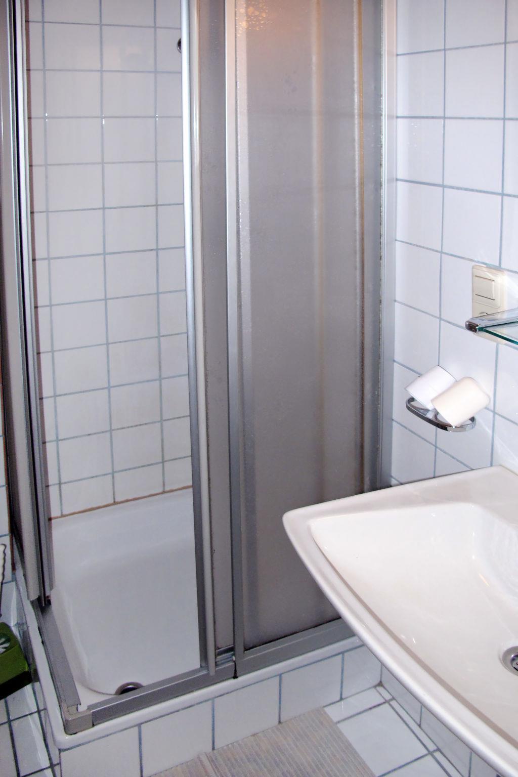 "Josef", 4-room apartment 100 m2 on 1st floor. Practical furnishings: 1 double bedroom with hand-basin. Exit to the balcony. 1 double bedroom with shower/WC. 1 room with 2 double beds and shower/WC. Exit to the balcony. Kitchen-/living room (4 hot plates, oven, dishwasher, toaster, kettle, electric coffee machine) with dining table and satellite TV. Exit to the balcony. Shower/WC. Heating. Parquet floors, carpet. Balcony. Please note: non-smokers only. Fire extinguisher.