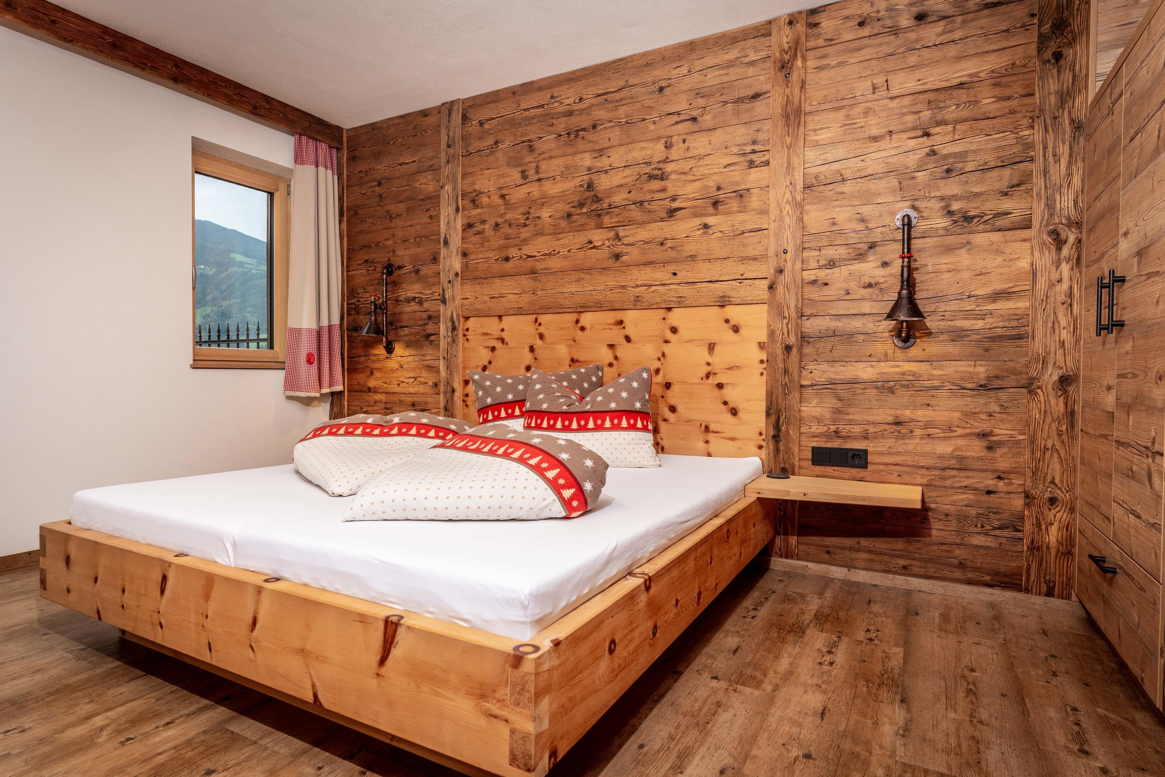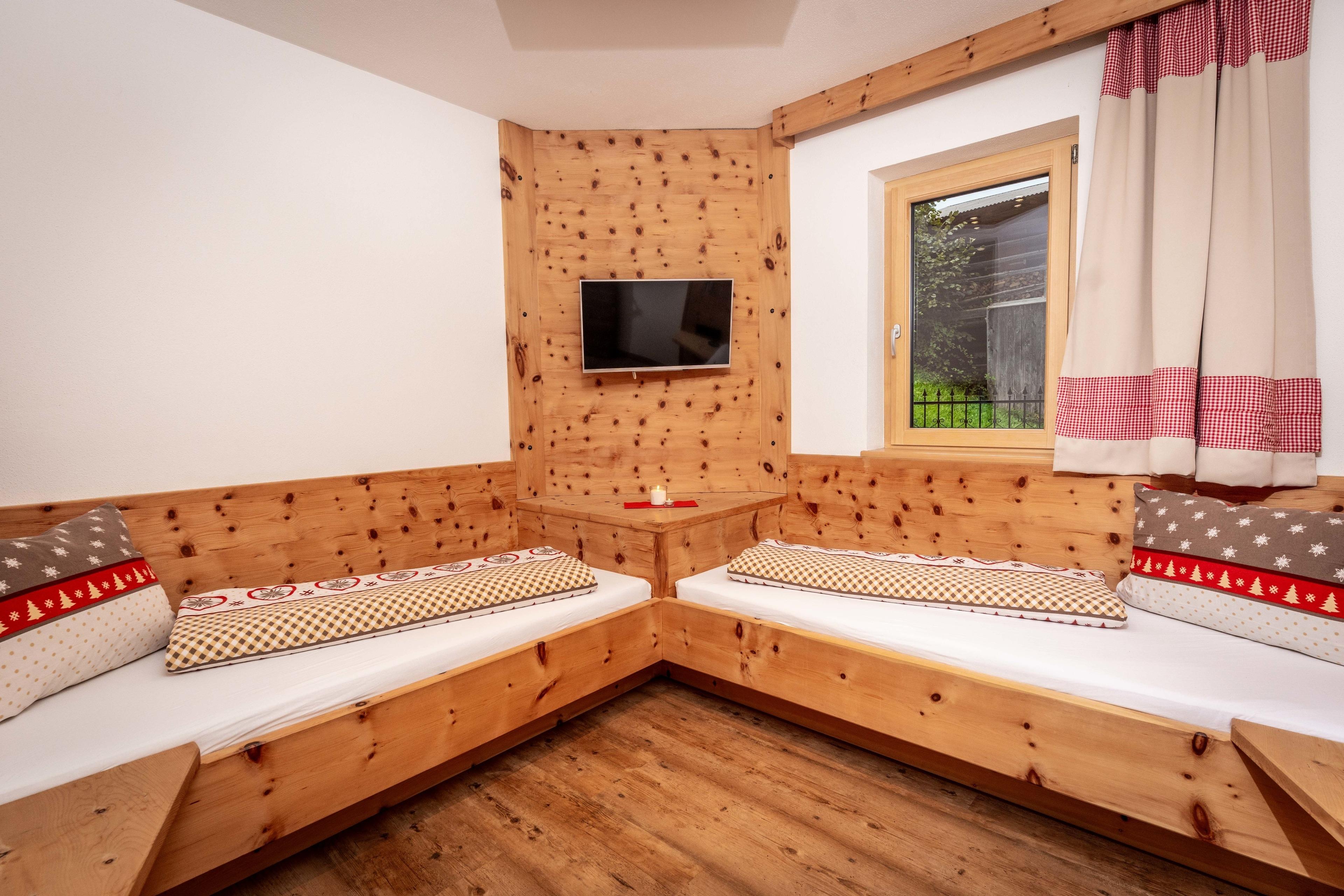... 4 herrliche Schlafzimmer mit eigenem TV (alle Betten sind aus Zirbenholz angefertigt)