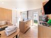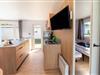 Stueetage: (åbent køkken(kogeplade, elkedel, emhætte, kaffemaskine, køle-fryseskab, , ), stue / spisestue(dobbeltsovesofa, Fjernsyn, spisebord, sofahjørne), soveværelse(dobbeltseng), soveværelse(enkeltseng, enkeltseng), badeværelse(bruser, håndvask), toilet) klimaanlæg, terrasse, luft til luft-varmepumpe