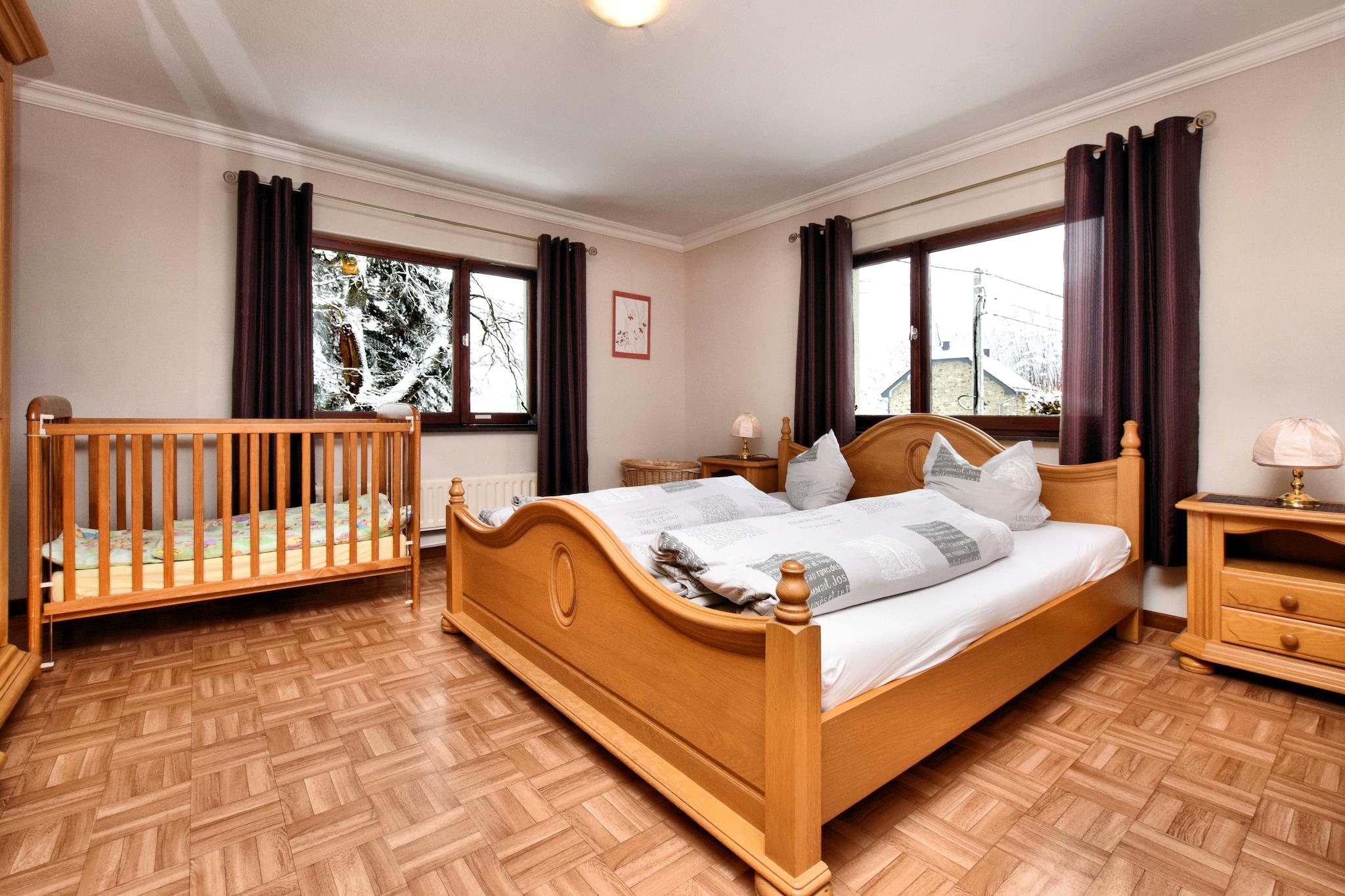 I den rolige landsby Schoppen, nær Butgenbach med sin berømte sø fuld af muligheder for vandsport finder du dette autentiske sommerhus. Du kan tage en pause i huset, der er ideel til familier med børn. Enhver privatliv er garanteret, og huset ligger kun 30 meter fra den dejlige legeplads i nærheden af kirken. Denne stille landsby i Eifel / Ardennerne er ideel for naturelskere og ligger i en attraktiv landlig beliggenhed nær den tyske grænse Der er flere naturreservater i området, herunder High Fens. Der er smukke vandrestier og hundreder af miles af Ravel ruter. Det er muligt at cykle med dig, men du kan også leje en cykel fra lokale udbydere. Om vinteren kan du nordisk ski og slæde, og om sommeren kan du gå på ridning. Huset er det perfekte udgangspunkt for at udforske den smukke region til fods, i bil eller på cykel. Om vinteren er der kun to kilometer før de første langrendsløjper. Besøg Bellevaux-bryggeriet, hamernes kurere i Montenau og ost i landsbyen er givende.