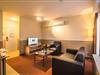 Stue(enkeltseng, Fjernsyn(fladskærm), spisebord, sofahjørne), åbent køkken(kogeplade(glaskeramisk), emhætte, mikrobølgeovn, køleskab, , ), soveværelse(enkeltseng, enkeltseng), badeværelse(bruser, håndvask, toilet, føntørrer), Internetadgang, vaskemaskine, klimaanlæg, parkering
