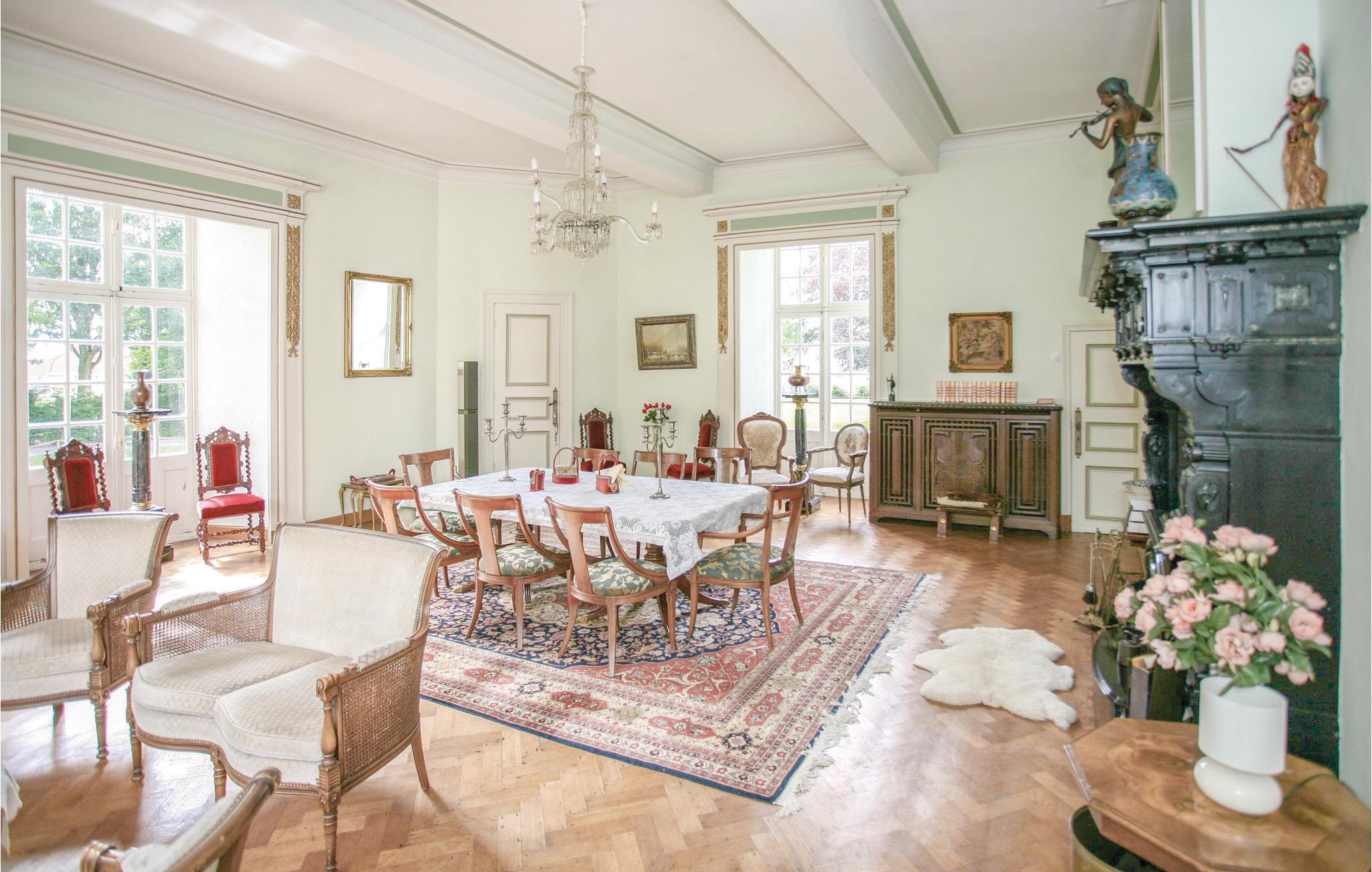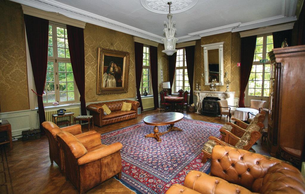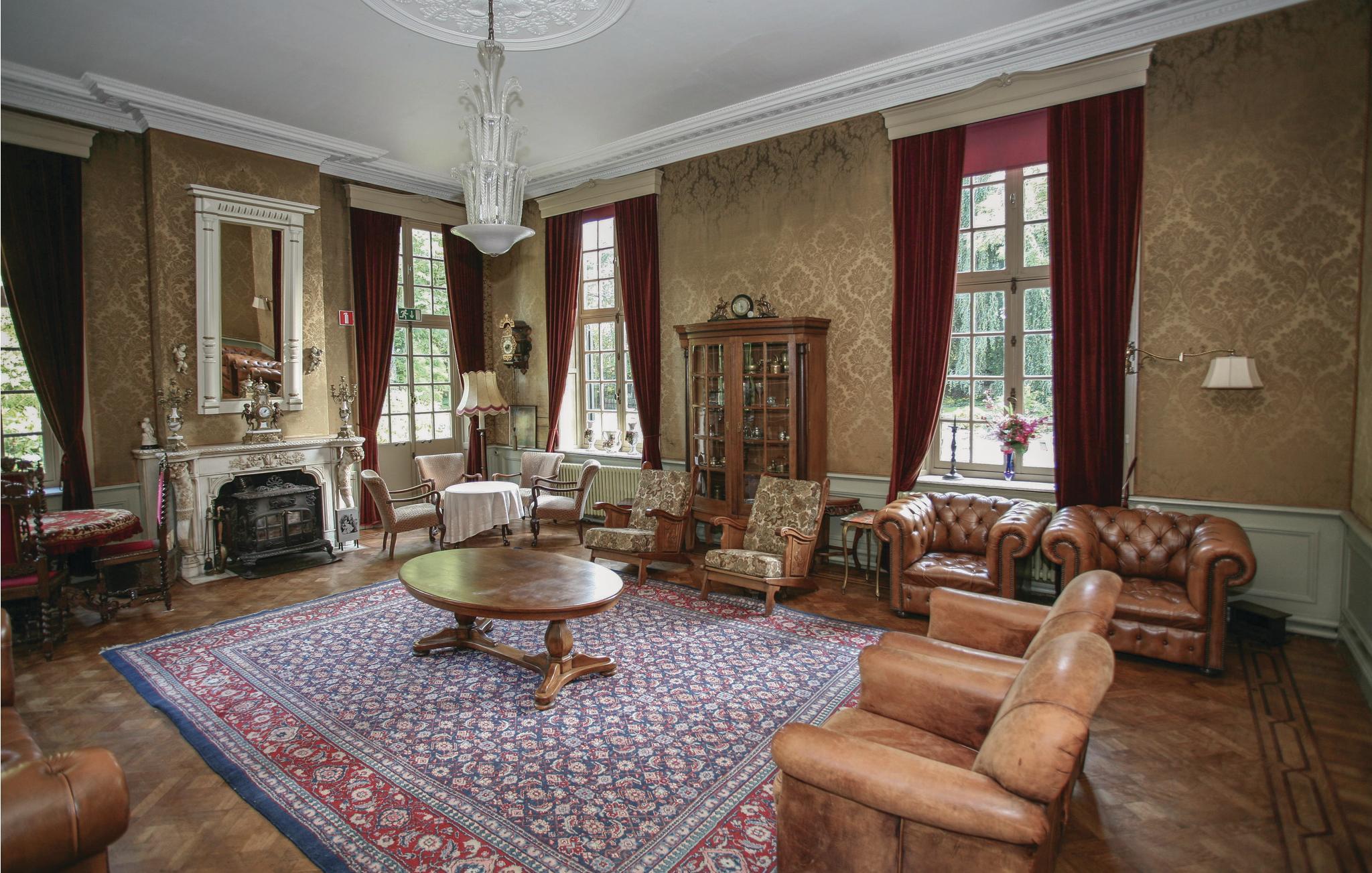 Allerede slottets enestående beliggenhed ved vandet og den tilstødende have er seværdigheder. Det er del af en 20.000 m² stor ejendom med engelsk have, søer med springvand, robåd, en stor terrasse med havemøbler og grill. Her kan I nyde stilhed, frihed og privatsfære, og bor alligevel kun få minutters gang fra dagligvarebutikker, restauranter og gadecaféer. Slottet er forbeholdt ikke-rygere. For at alle kan føle sig dejligt tilpas her er vinkælderen blevet ombygget til en hyggelig bar, hvor der må ryges, og hvor bordfodbold sørger for adspredelse. Dertil er der her stereoanlæg, wlan, tv, dvd-afspiller med film, Wii samt en stor legekasse med pusle- og brætspil.