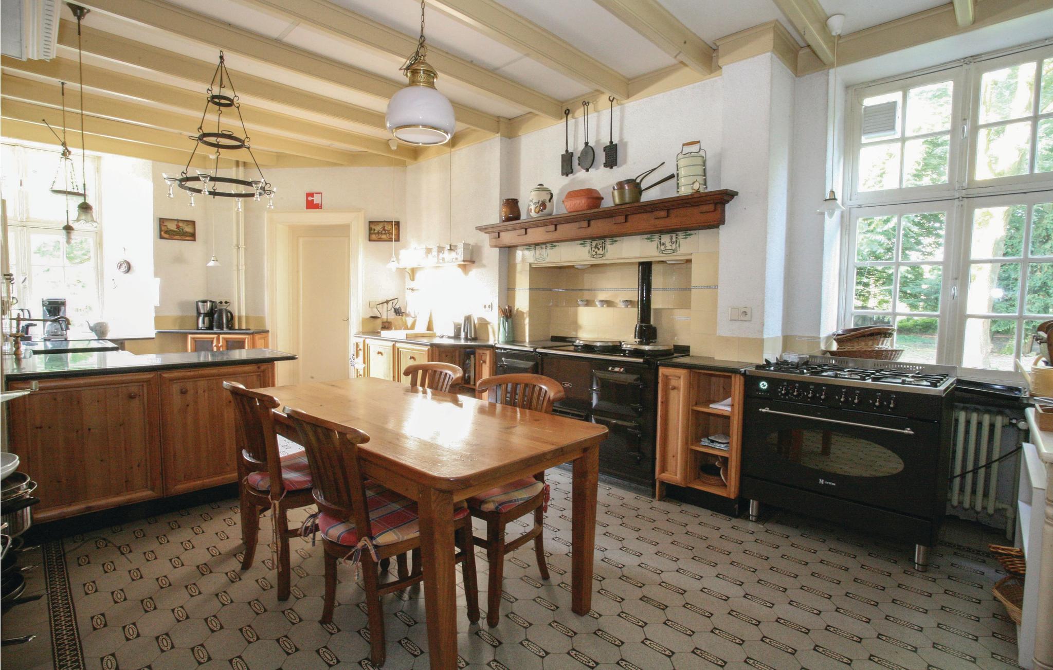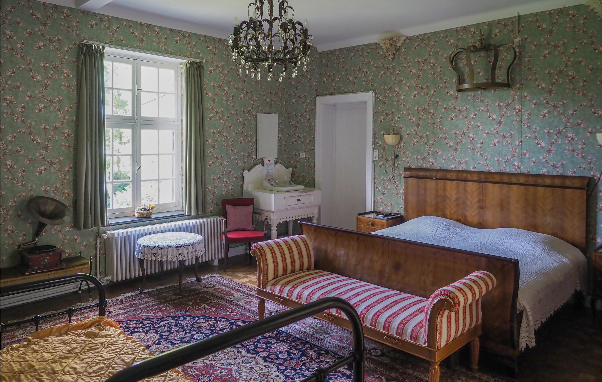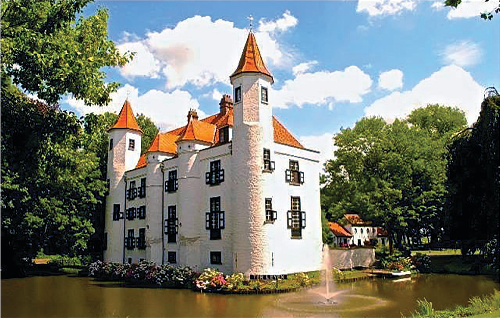 Allerede slottets enestående beliggenhed ved vandet og den tilstødende have er seværdigheder. Det er del af en 20.000 m² stor ejendom med engelsk have, søer med springvand, robåd, en stor terrasse med havemøbler og grill. Her kan I nyde stilhed, frihed og privatsfære, og bor alligevel kun få minutters gang fra dagligvarebutikker, restauranter og gadecaféer. Slottet er forbeholdt ikke-rygere. For at alle kan føle sig dejligt tilpas her er vinkælderen blevet ombygget til en hyggelig bar, hvor der må ryges, og hvor bordfodbold sørger for adspredelse. Dertil er der her stereoanlæg, wlan, tv, dvd-afspiller med film, Wii samt en stor legekasse med pusle- og brætspil.