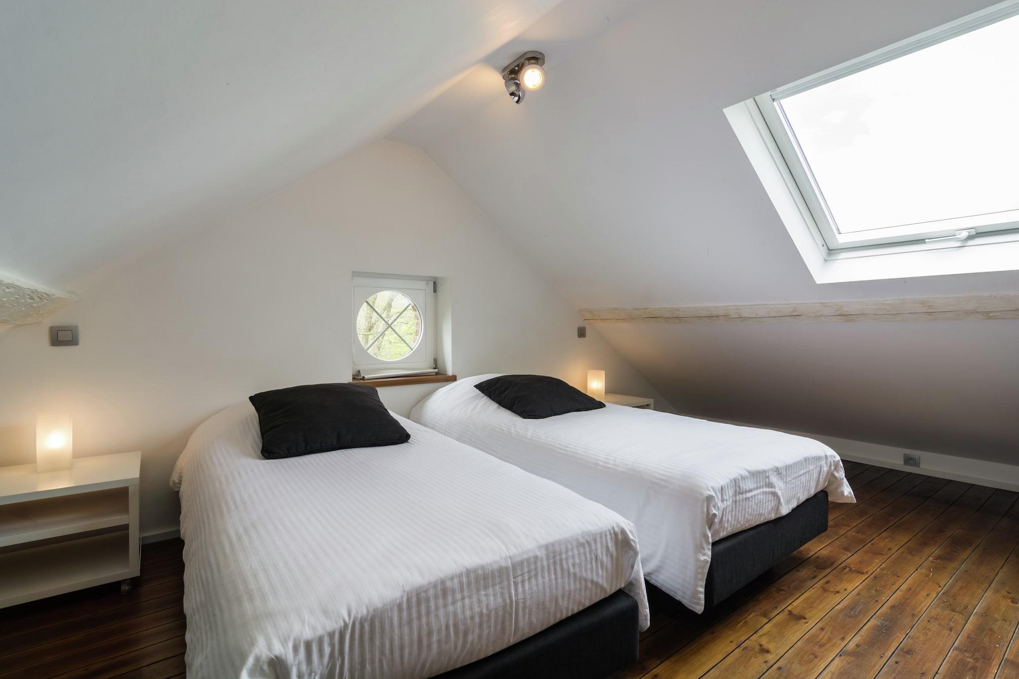 Dette smukke feriehus ligger i Dalhem, 8 km fra Aubel by, på grænsen mellem Flandern og Holland. Huset ligger på en lille bakke med træer og græsarealer og er et ideelt tilbagetog for en ferie med hele familien. Huset er meget smagfuldt indrettet og nogle af væggene er dækket af friske, muntre farver. Efter en dag i udendørs luften vil du søge afslapning i saunaen eller nyde den knitrende pejs i den hyggelige stue. Det er meget behageligt at sidde på den overdækkede terrasse om sommeren, hvor du også kan grille. kan nyde sig på trampolinen i den charmerende have eller i legepladsen. Dette sommerhus er rettet mod familier. Du er i det kuperede Aubel-område, kendt for sine frugter og specialiteter, cider! Ravel-ruten for cyklister er 7 km væk, og der er vandsportsmuligheder i en afstand af 22 km ved Gileppe-søen. Andre attraktioner er de gamle mines Blégny (8 km), klosteret i Val Dieu (6 km), den middelalderlige landsby Limbourg 6 km) og byen Liège.