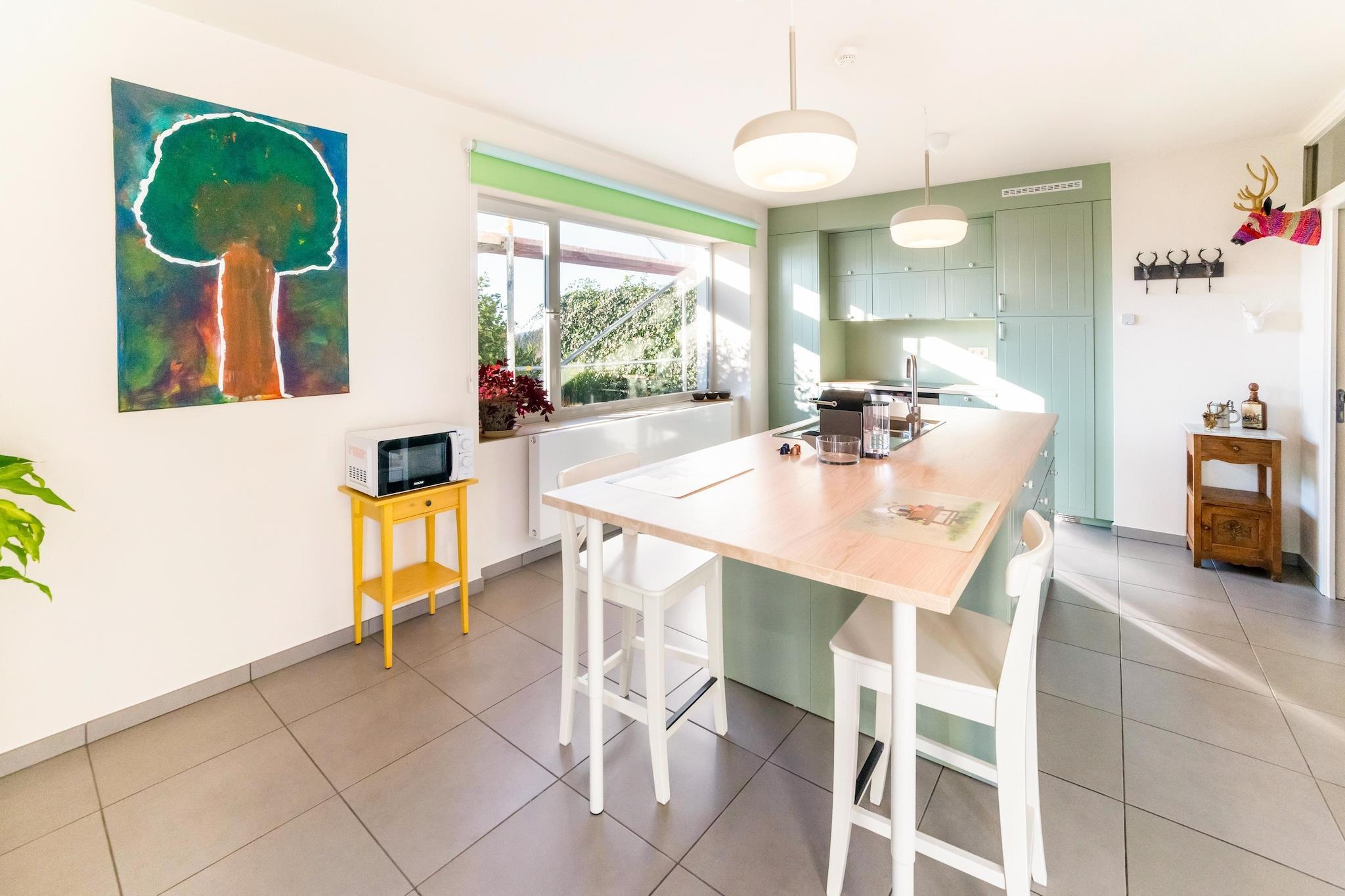 Denne charmerende villa i Awenne tilbyder en fredelig flugt for par eller små familier. Med en hyggelig stue/spisestue, streamingtjenester og et fuldt udstyret køkken med espressomaskine, ovn og opvaskemaskine, er det designet til komfort og bekvemmelighed. Soveværelset ovenpå, rummeligt badeværelse med badekar og bruser samt et studie med opholdsområde giver en afslappende atmosfære. En infrarød sauna tilføjer et strejf af wellness, mens den private have med hængekøje, grill og udendørsmøbler inviterer gæster til at slappe af. Yderligere faciliteter omfatter en vaskemaskine, cykelopbevaring og centralvarme, hvilket gør den ideel til ophold året rundt. Uanset om du nyder en stille aften indendørs eller spiser al fresco på terrassen, blander denne villa moderne stil med rustik charme. I nærheden kan du udforske Musées du Fourneau Saint-Michel, kun 2,6 km væk, og fremvise landlige arv i udendørs omgivelser. Parc à Gibier de Saint-Hubert byder på møder med vilde dyr i en skovklædt park, mens Basilique Saint-Hubert imponerer med sin arkitektur og historie. Til spisning kan du prøve L'eau Antique i Awenne for raffineret belgisk køkken, eller Le Barathym i Nassogne for sæsonbestemte franske retter. Denne villa er en perfekt base for at opdage Ardennerne.