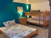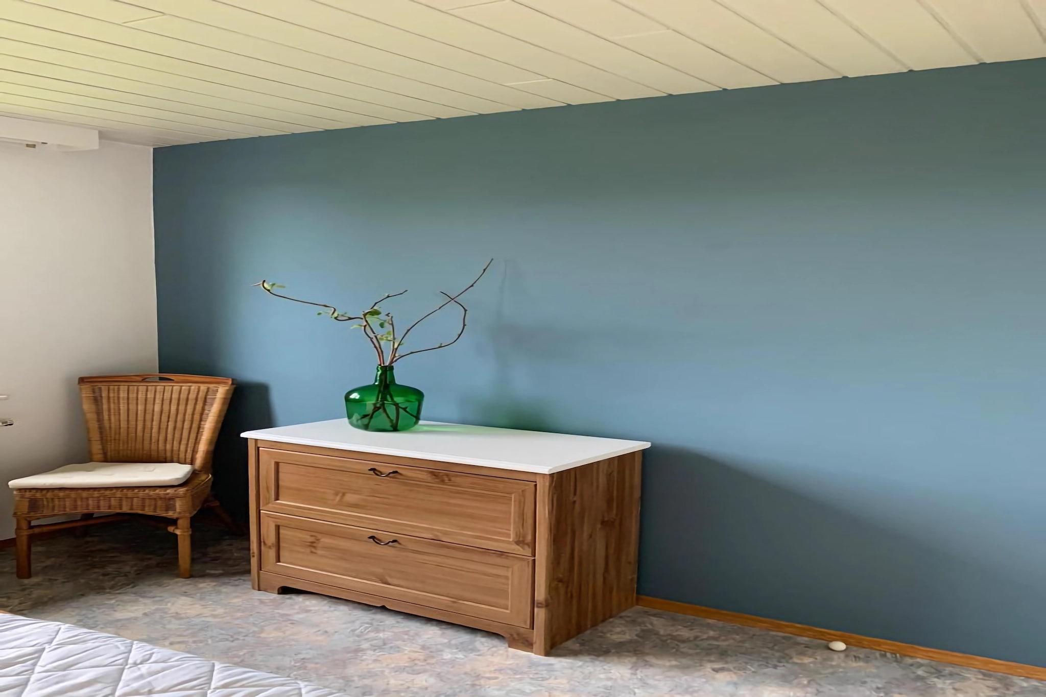 Stueetage: (Indgang ) På 1. etage: (sofastue(Fjernsyn), Køkken(komfur, kaffemaskine, ovn, mikrobølgeovn, køle-fryseskab), soveværelse(dobbeltseng), soveværelse(dobbeltseng, køjeseng), badeværelse(badekar, håndvask), toilet) terrasse, have(deles med andre gæster, 1700 m2), grill, parkering