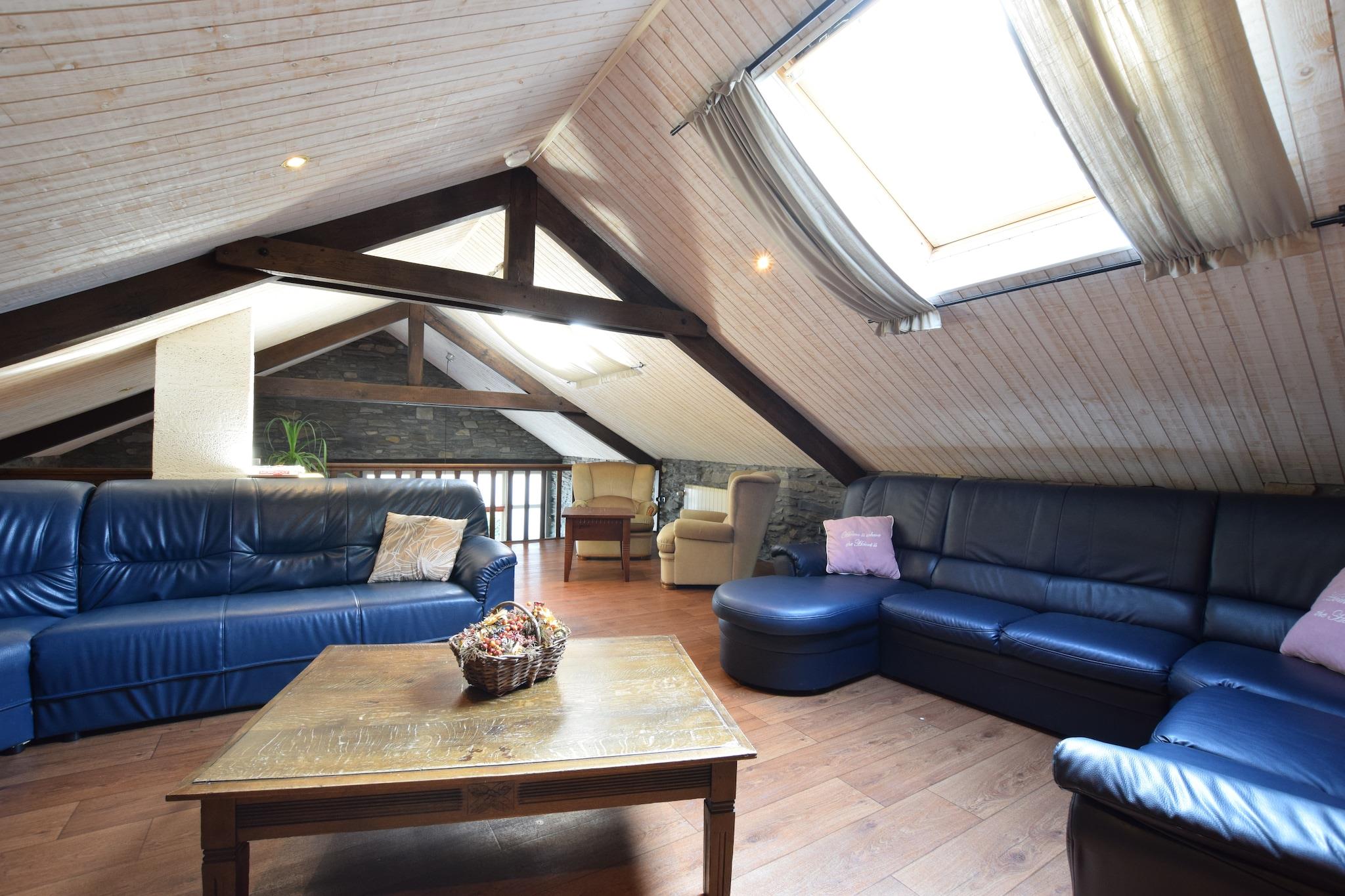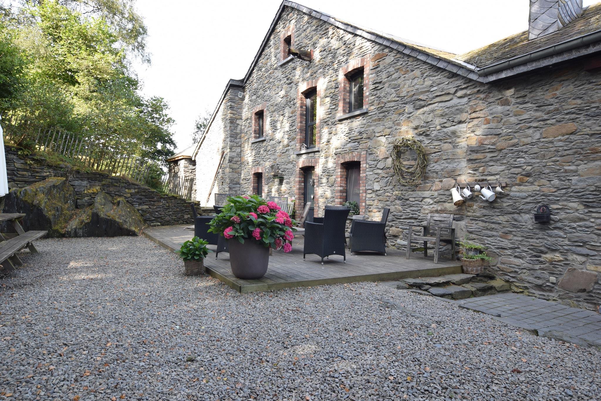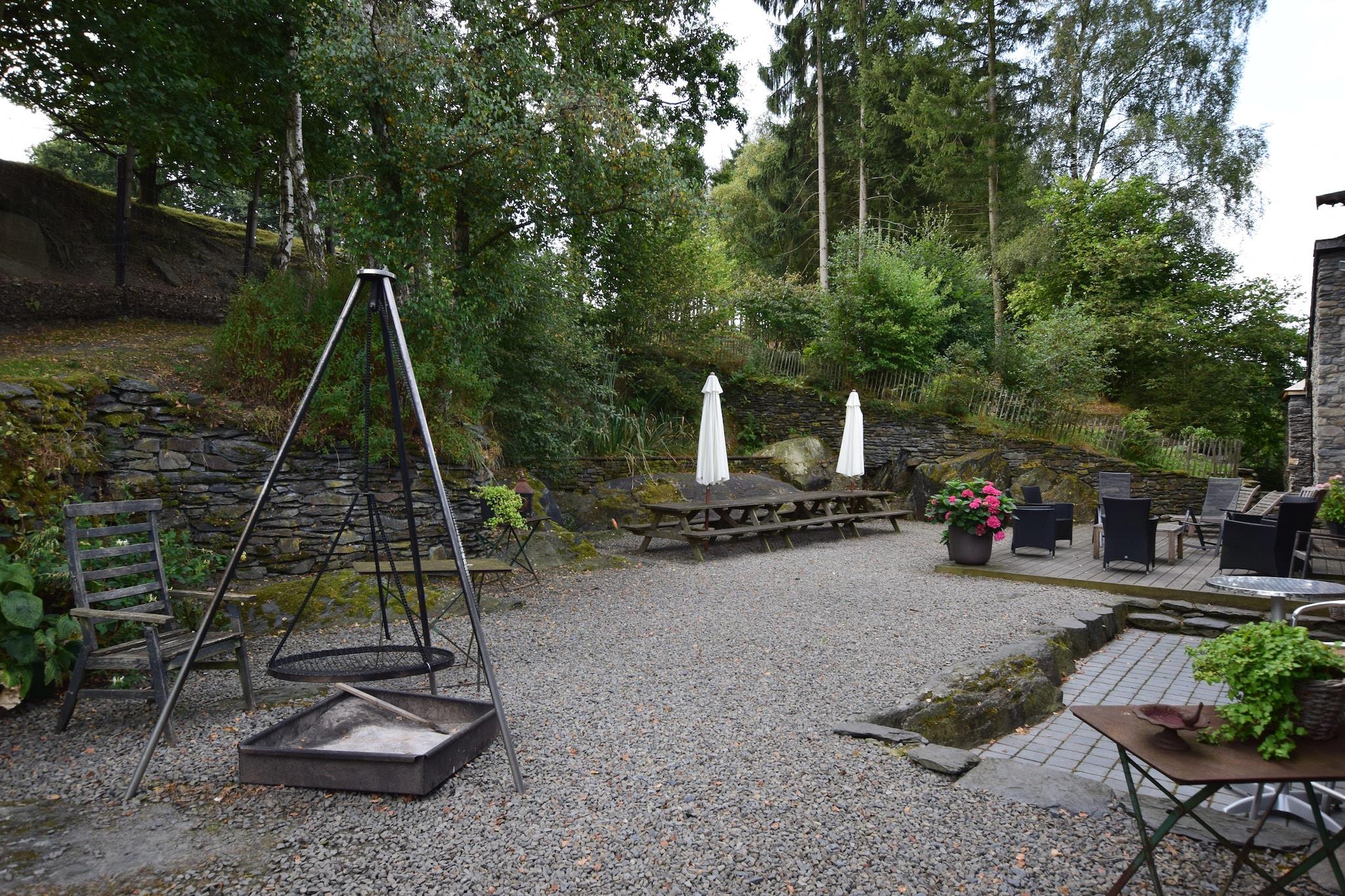 Dette rummelige feriehus med sauna, biljard og naturpark ligger 9 km fra Bastogne, i provinsen Luxemburg. Det dejlige hus er velegnet til større grupper. Huset, oprindeligt en vandmølle fra det 17. århundrede, er fuldstændig renoveret. Du vil finde masser af gamle elementer i interiøret. På grunden vil du løbe ind i et lille vandfald. Den bæk, som den stammer fra, løber lige forbi huset. Du vil ikke blive generet af nogen støj; fred og ro er garanteret i dette sommerhus beliggende i en blindgyde. Den sydlige terrasse giver adgang til jeu-de-boules banen, marken med høstuger og skoven. I Bastogne kan du besøge et museum om 2. verdenskrig (9 km), og i Recogne er der en bøffelbondegård (4 km) Du vil finde en tropisk swimmingpool i Houffalize (9 km). Bugten i Bavigne (29 km) er et besøg værd. Eller forbløff dig med den smukke udsigt nær Esh-Sur-Sûre (35 km). Dette feriehus er mest egnet til at modtage familier. En anden samling af besøgende er kun mulig efter aftale.